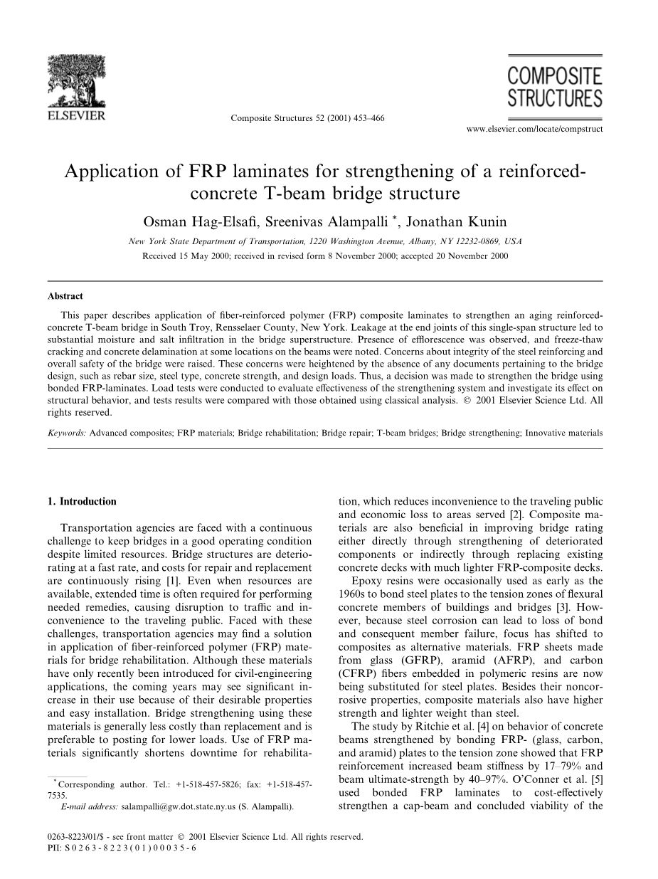 关键词:先进复合材料;FRP材料;桥梁修复;桥梁恢复;T梁桥;桥梁加固;新型材料