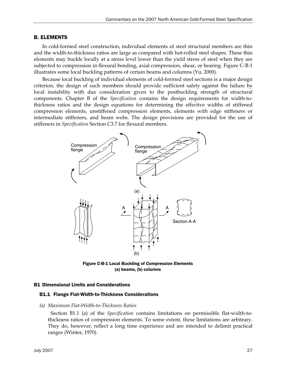 冬季在以前版本的AISI评论(Winter,1970)中讨论了压缩元件的后屈曲作用。
