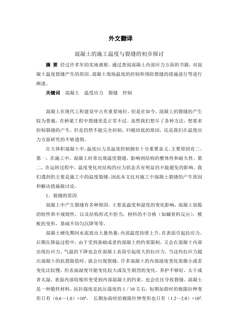 《Discuss the construction temperature and crack of the concrete lightly 》