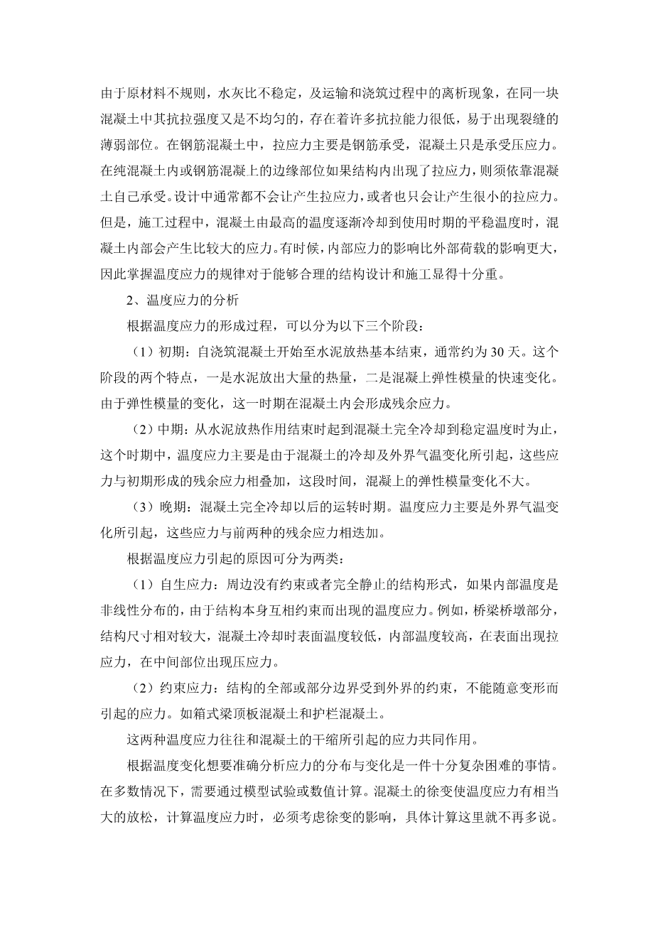 The summary , through observation live for many years, through consulting the monograph about stress within the concrete, explain to concrete temperature reason , on-the-spot concrete control and measure , prevention of crack of temperature that crack produce.
