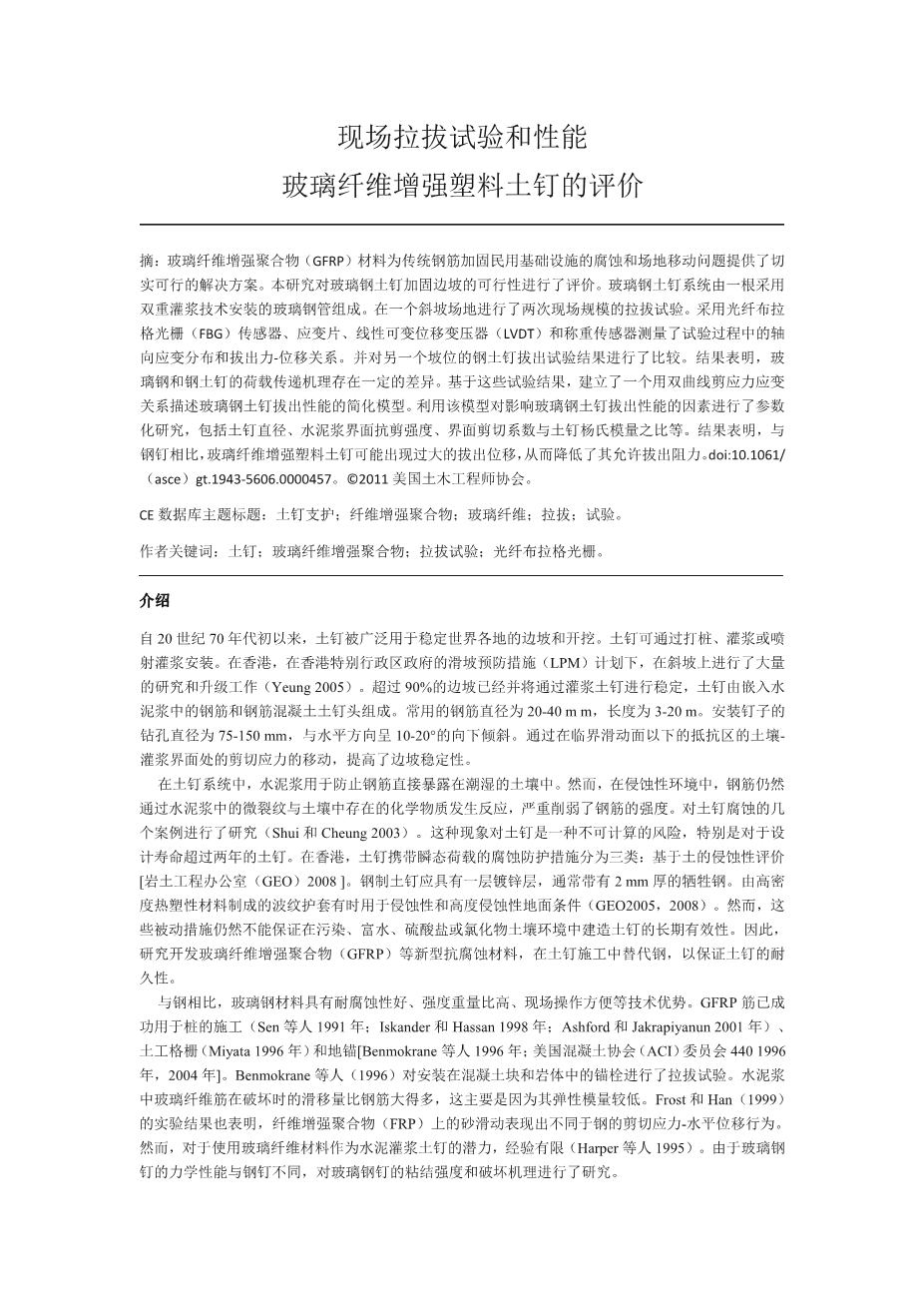 玻璃纤维锚杆加固边坡的性能研究外文翻译资料 2021-12-25 16:54:57 英语原文共 10 页 英语原文共 18 页资料编号:[3681] 原文和译文剩余内容已隐藏,您需要先支付 30元 才能查看原文和译文全部内容!立即支付 发小红书推广免费获取该资料资格。点击链接进入获取推广文案即可: Ai一键组稿 | 降AI率 | 降重复率 | 论文一键排版 PREVIOUS NEXT 您可能感兴趣的文章 内置支撑的基坑在水泥土搅拌排桩作用下的响应外文翻译资料 钙质砂的破碎和极限状态外文翻译资料 未胶结的碳酸盐砂的力学性质外文翻译资料 隧道钻爆超挖的神经遗传预测模型外文翻译资料 新西兰达尼丁的地质和地质灾害管理外文翻译资料 隧道施工数值模拟外文翻译资料 考虑土强度非线性影响的土坡稳定性外文翻译资料 膨润土沙垃圾填埋场衬垫的收缩和干裂外文翻译资料 基于软土地基桩承式平台的二维试验和数值模拟外文翻译资料 核电站基岩爆破开挖中的岩石损伤控制外文翻译资料