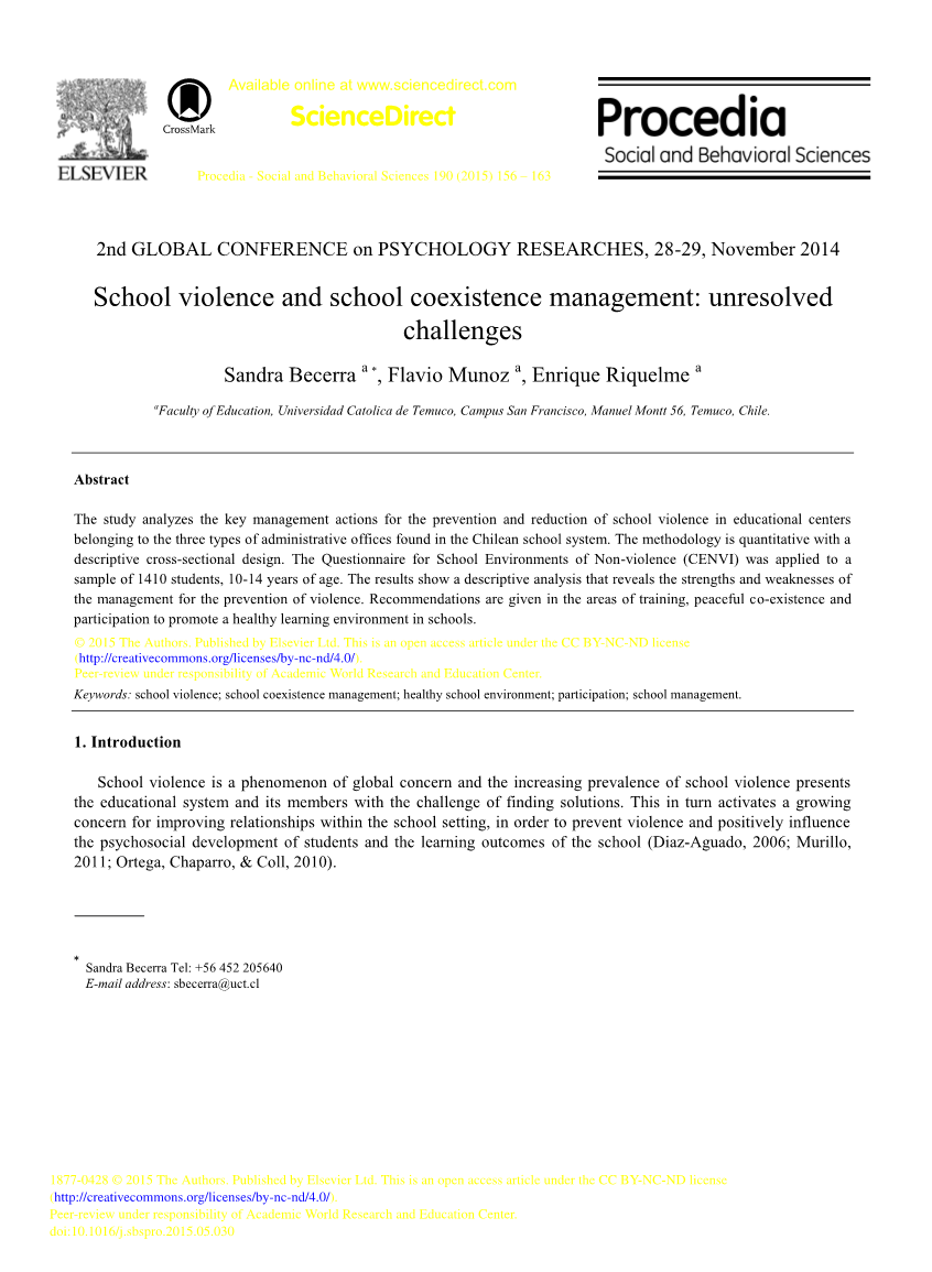 非暴力健康学校环境管理领域表明,对暴力行为实行连贯一贯,逐步制裁的基本程序正在实现。这强调了教师处于特权状态,可以帮助他们防止侵略,促进和平共处(Lopez等,2011)。以Chaux(2011)的话来说,很明显,这个特权的立场并不意味着教师要承担这个责任的全部责任,而是确实意味着他们应该能够和平地按照规则处理任何冲突,学校制定的程序和制裁。重要的是要注意,学校对学生受害者或侵略者的父母缺乏指导性行为,以及缺乏必要的监测已知暴力事件的情况,强调了培训教师需要和平共处的战略和需要接受培训能够为学校暴力等事宜提供支援和指导的学校专业人士。几项研究揭示了教师培训教学中弱点,了解和管理学校的暴力和侵略方面(Becerra,2011; Chaux,2011)。关于学校需要专业支持的需要,有必要强调,在智利,公共政策在促进该地区的管理做法方面存在争议。然而,它所依据的法律并不要求学校有训练有素的人员(顾问和/或心理学家)。对这些专业人员的工作人员和不会对这些做法产生影响的中心进行比较研究。