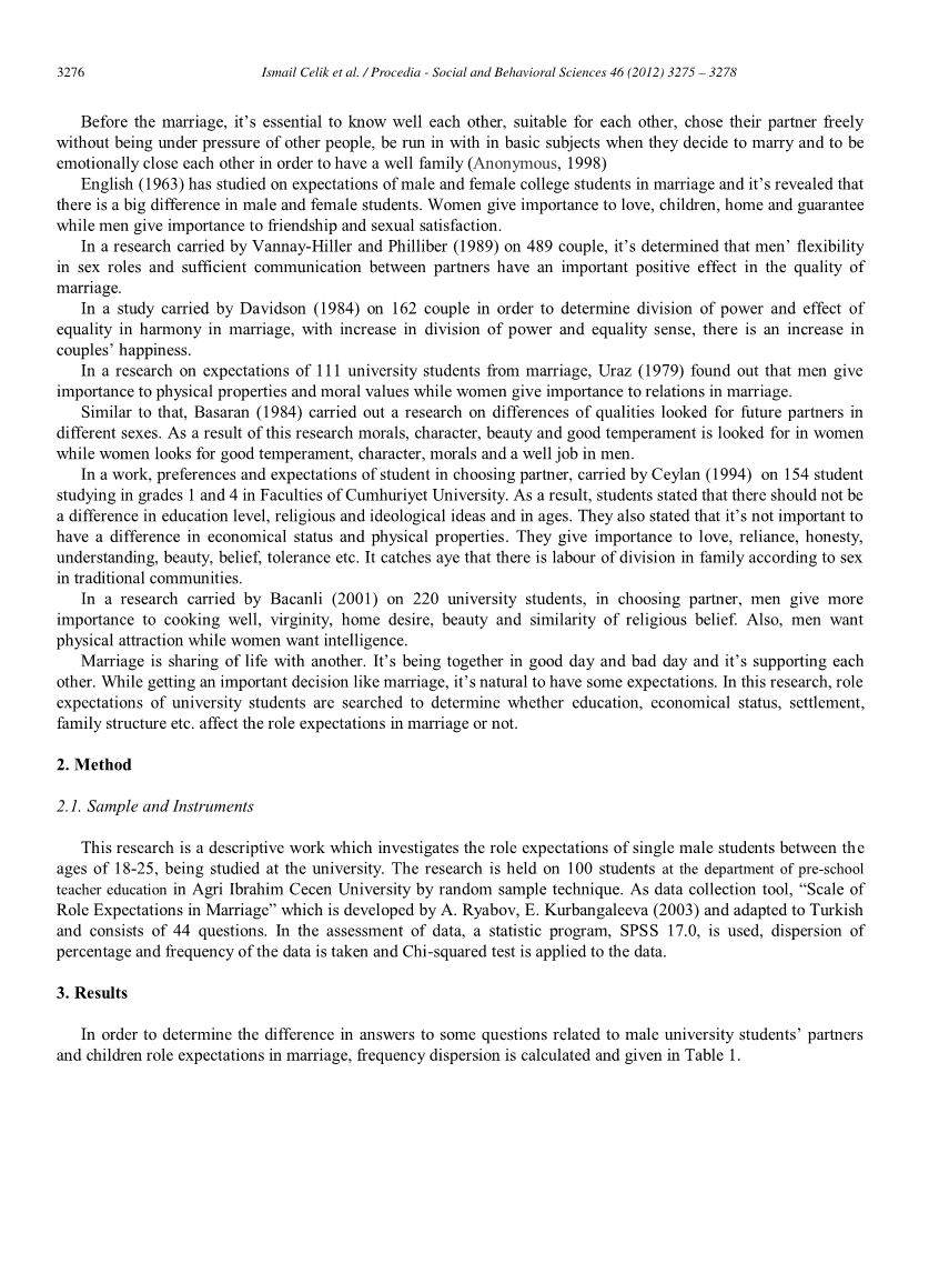 当提到婚姻时,可以考虑像合作伙伴预期的角色和家庭的期望等。婚姻是一个重要的社会需求,因为家庭是社会的基石。在土耳其研究有限,但这些研究的变量主要是关于教育,经济,物理和性期望。虽然这项工作支持相关的乱抛垃圾,但比例有差异。在Ceylan(1994)对男性大学进行的一项研究中,学生们,男人说男人可以欺骗,离婚是荒谬的,但是妇女不能作弊,妇女的作弊应以离婚为结束。在2007年Ondas进行的另一项工作中,男性曾表示,男性是家庭负责人,负责各种费用,也表示妇女没有必要为家庭预算做出贡献。作为这项工作的结果,家长制和保守的土耳其家庭结构变成了民主和现代的结构。此外,预计妇女在家庭中更加活跃。除此之外,威权和保守的态度继续成长于孩子。婚姻中角色期望的装置可以成为其他研究的研究课题。