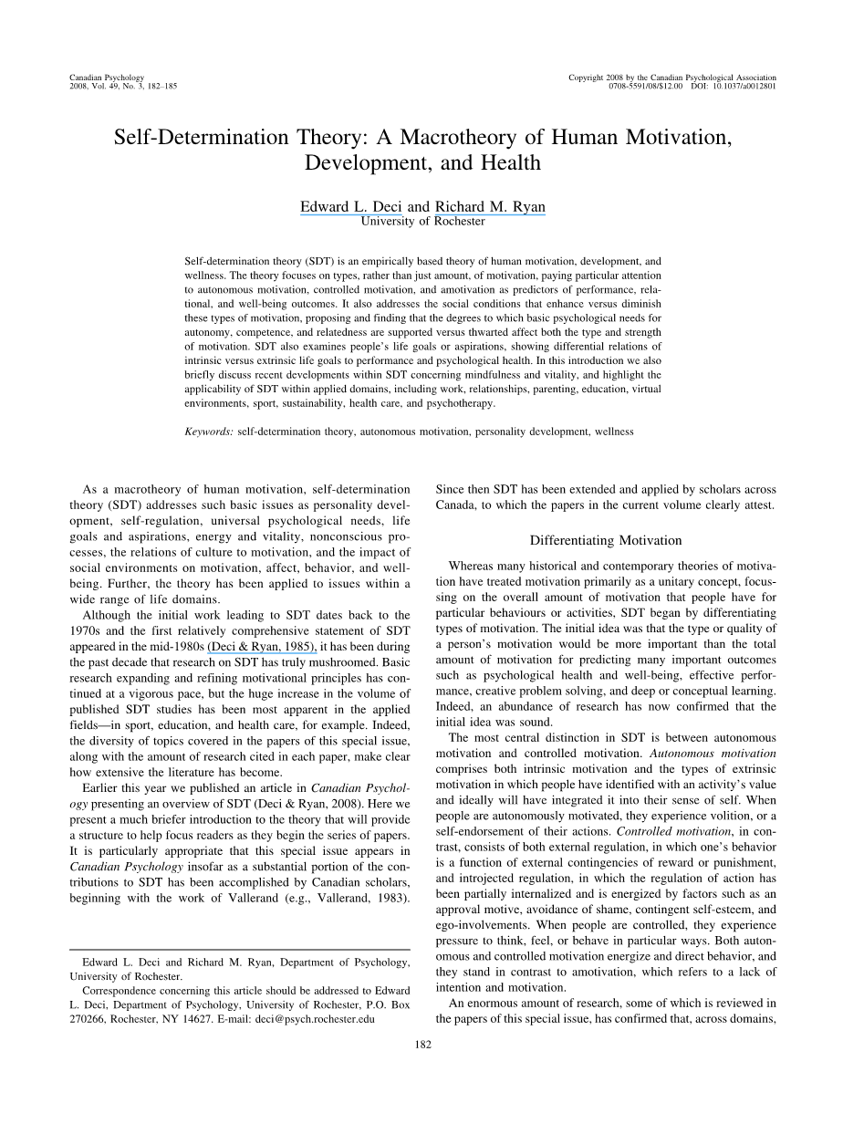 从那时起,加拿大的学者们就已经扩展和应用了自我决定理论,目前的卷宗就证明了这一观点。