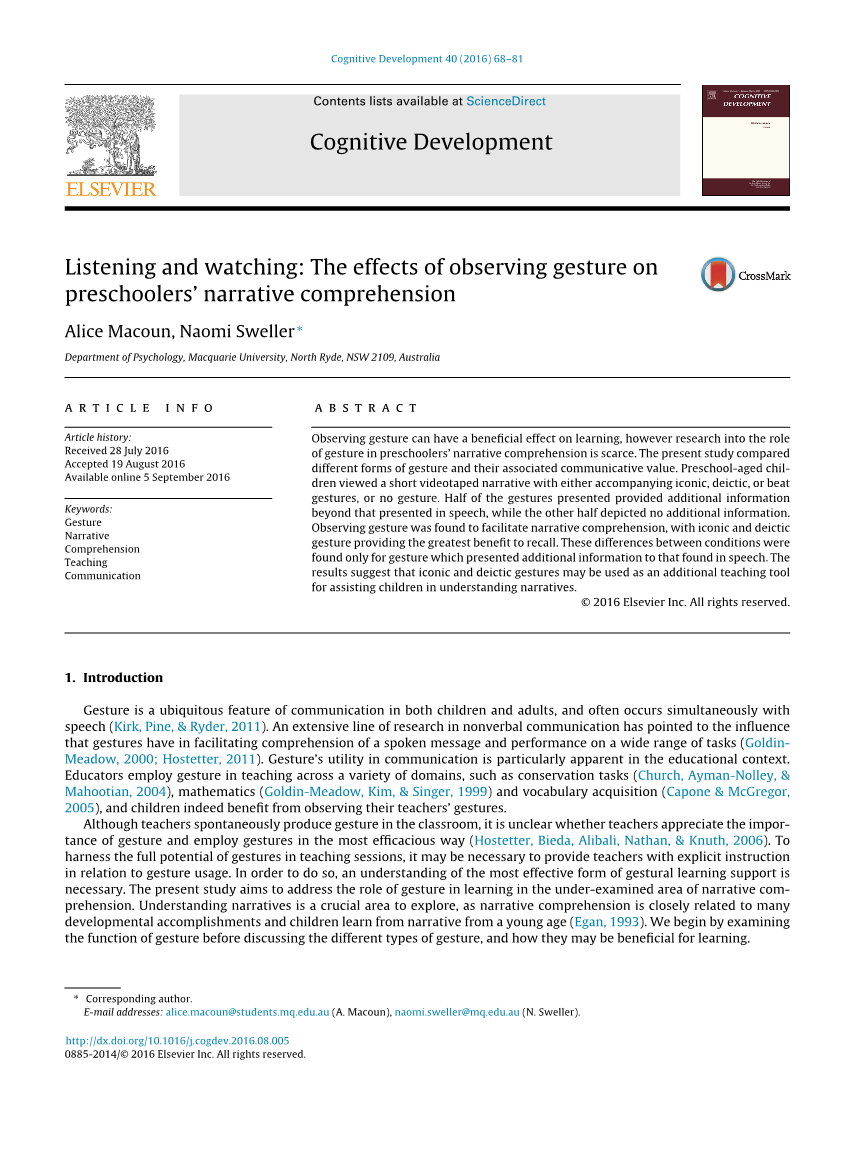 听与看:观察手势对学龄前儿童叙事理解的影响外文翻译资料