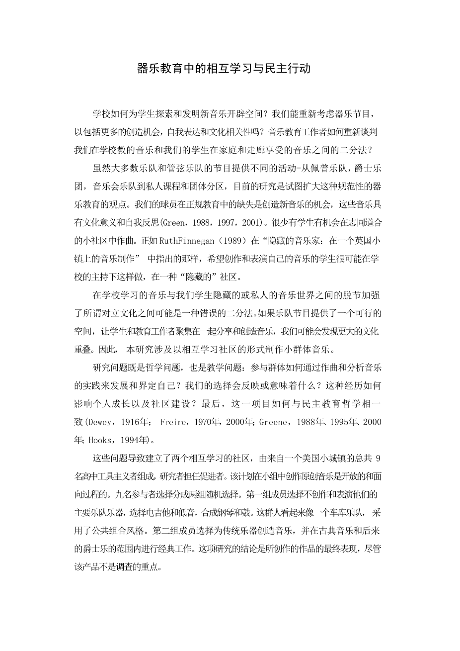 Mutual Learning and Democratic Action in Instrumental Music Education