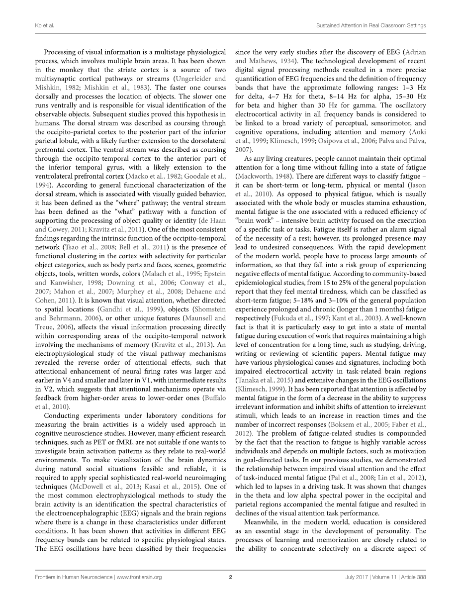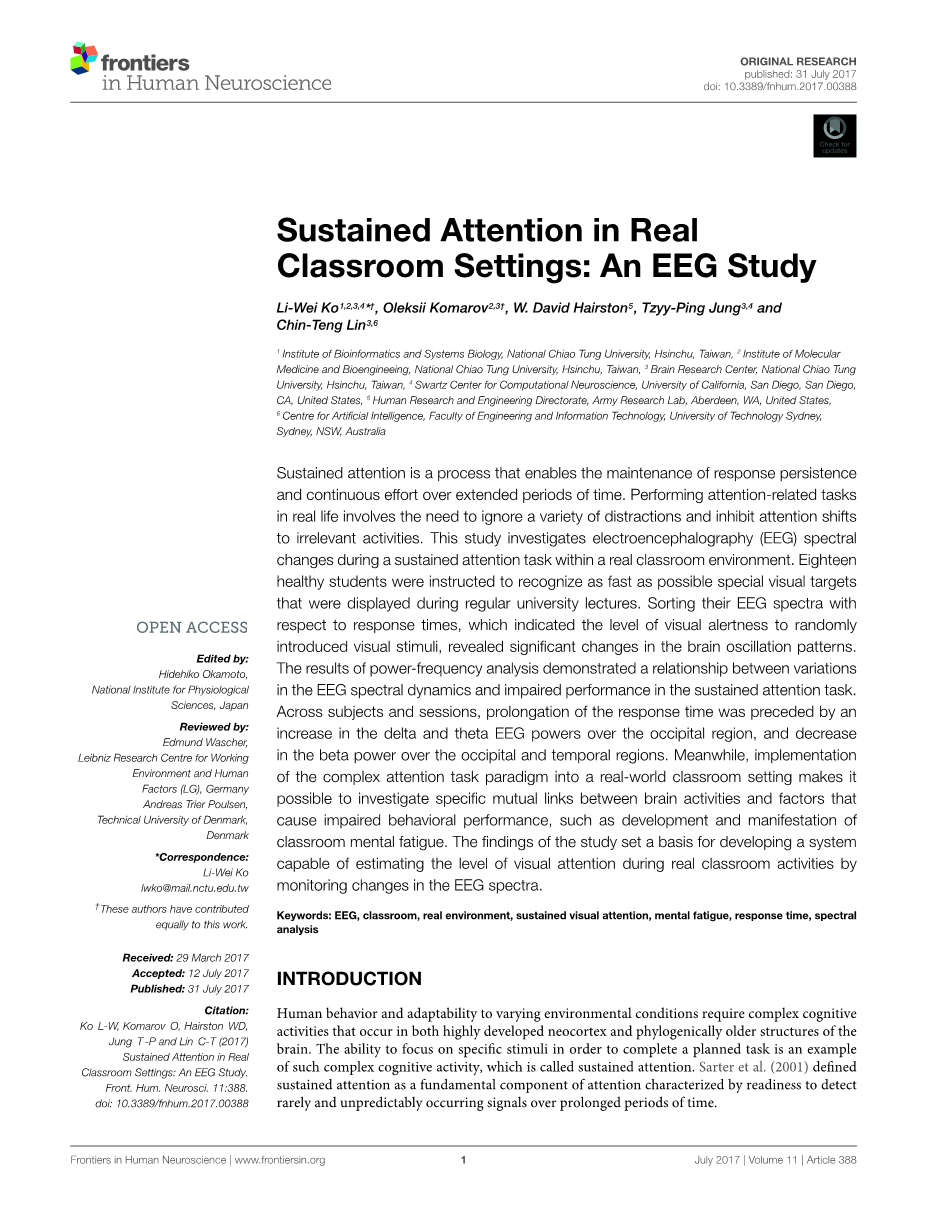 真实课堂环境中的持续注意力:脑电图研究外文翻译资料