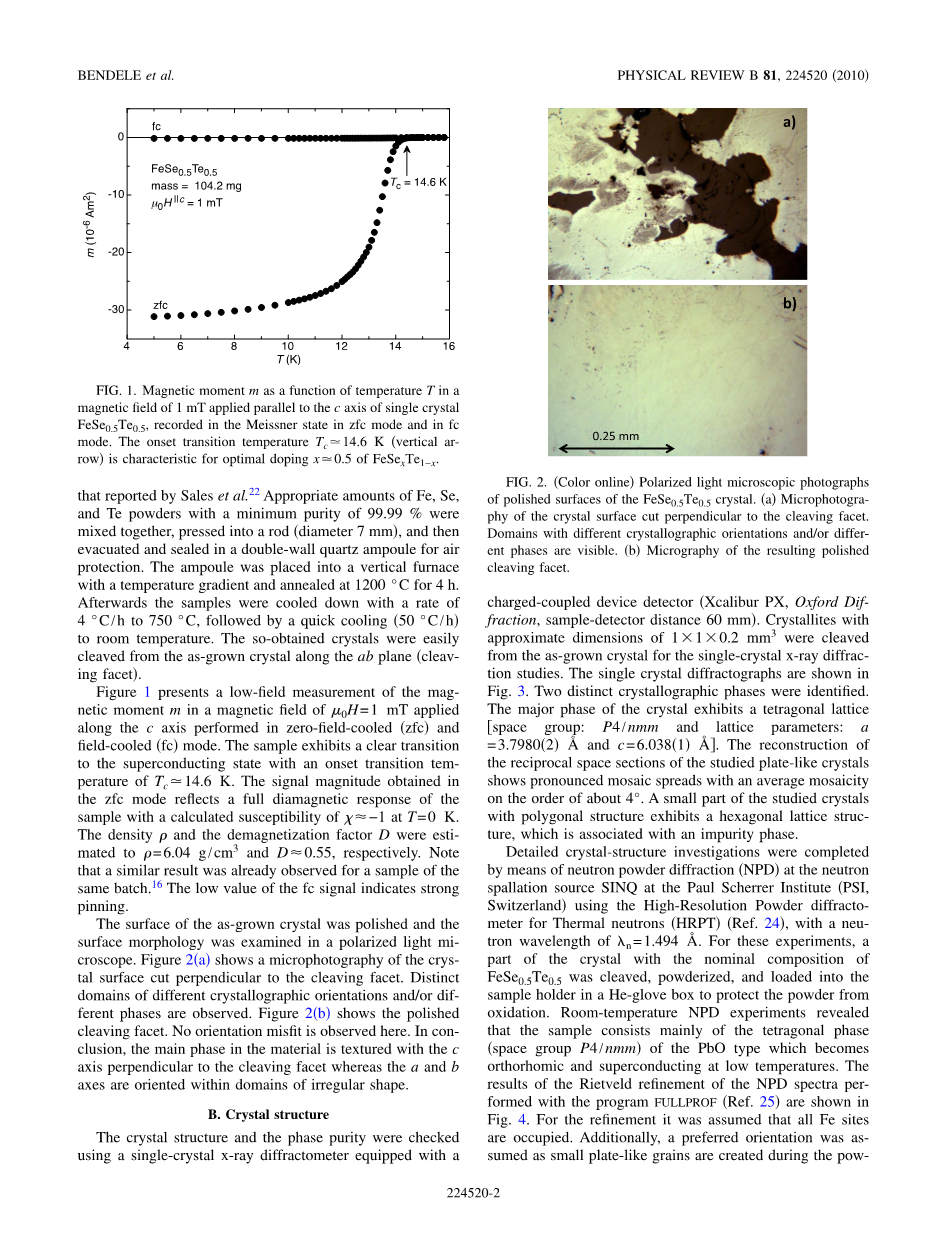 用光学显微镜研究了标称成分为FeSe0.5Te0.5的单晶mu;SR,SQUID和转矩磁强计,中子粉末衍射。在室温下,晶体主要表现为PbO型四方相,在低温下变为正交和超导体,化学计量比细化为Fe1.045Se0.406Te0.594。起始转变温度为Tc=14.6K,在零温度下测定了两个晶体学方向的下临界场值,即(0)=2.0(2)mT和(0)=4.5(3)公吨。