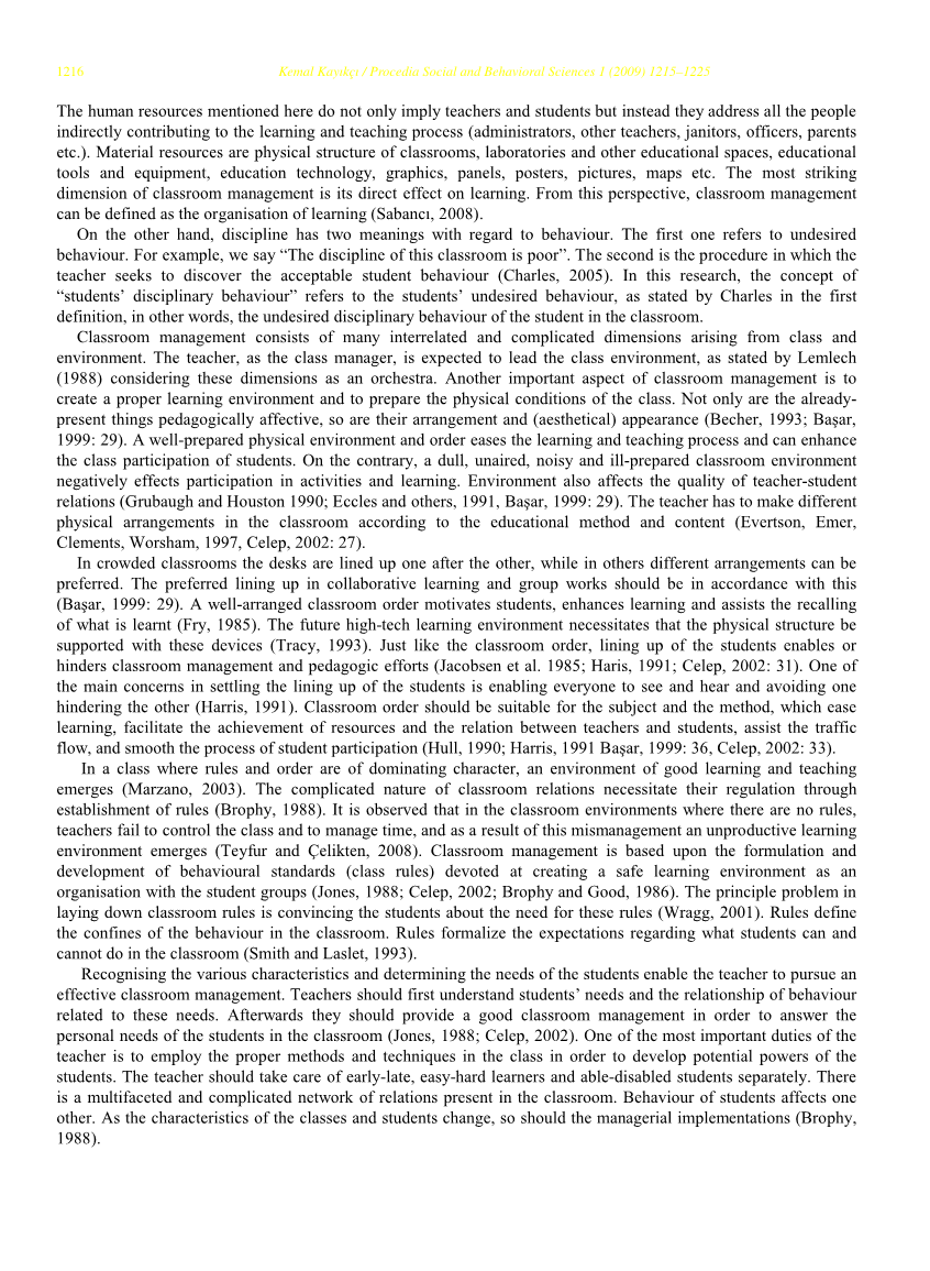 每个老师在辅导期间都会遇到问题。总的来说,缺乏足够的课堂管理知识和技能的教师和新手找不到出路,一些教师利用从课堂地位获得的权威,以采取最简单、最危险的方式,即约束、暴力甚至威胁。这种课堂管理策略不能解决问题;相反,它们导致课堂环境腐败,并出现新的深刻问题。过分关注不良行为会破坏课堂的自然进程(Celik,2005)。