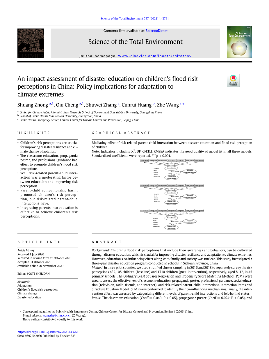 关键词:适应;儿童洪水风险感知;气候变化;灾害教育