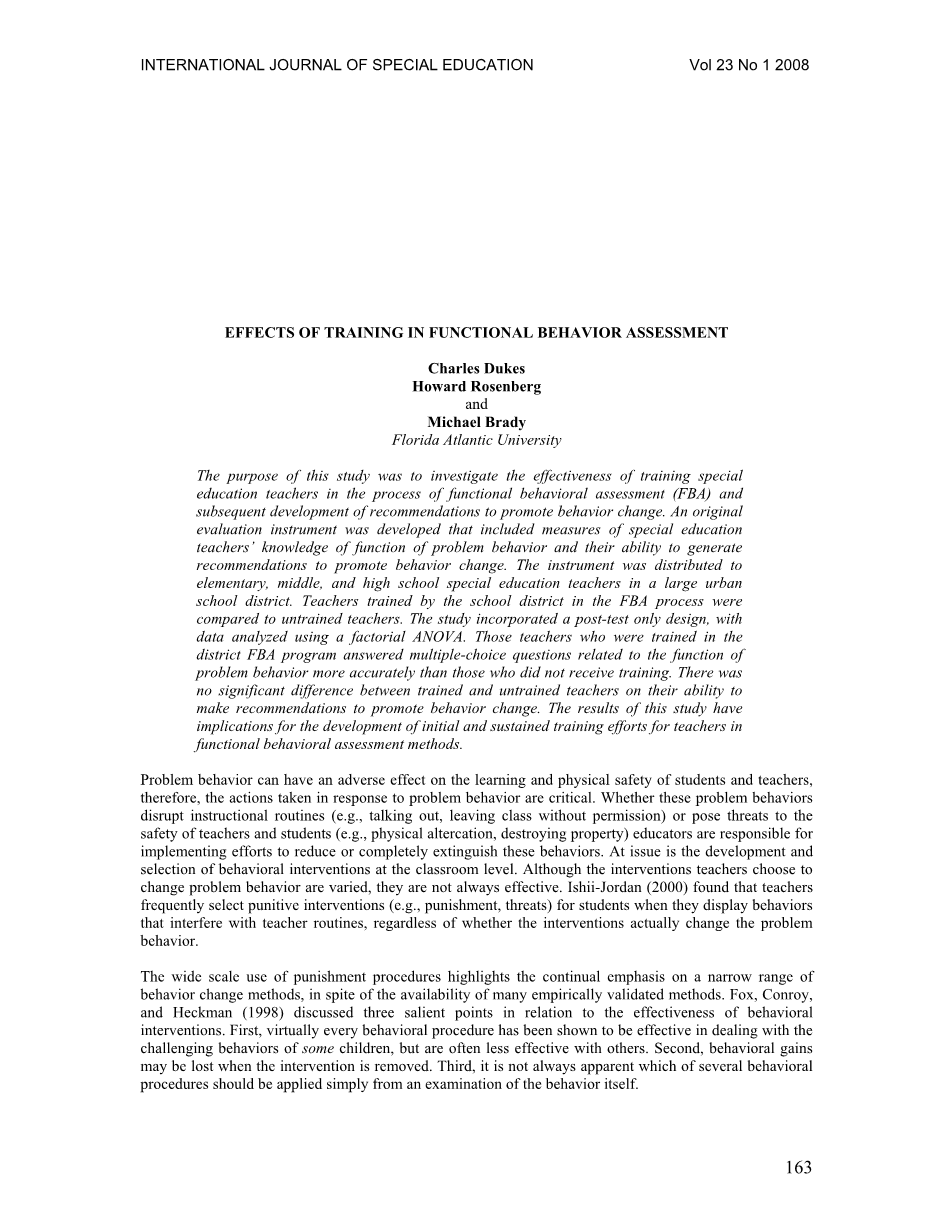 这项研究是在美国东南部的一个大城市学区进行的。多年来,学区努力培训绝大多数为残疾学生工作的教师。为了回应对问题行为干预和联邦立法的关注,学区启动了这个大规模的功能行为评估培训计划。
