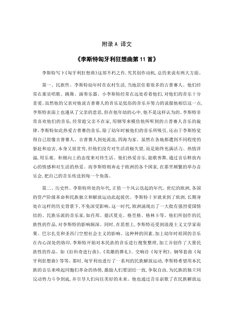 《李斯特匈牙利狂想曲第11首》外文翻译资料 2023-07-27 10:53:06 英语原文共 2 页,剩余内容已隐藏,支付完成后下载完整资料 英语译文共 4 页,剩余内容已隐藏,支付完成后下载完整资料 资料编号:[604851],资料为PDF文档或Word文档,PDF文档可免费转换为Word 原文和译文剩余内容已隐藏,您需要先支付 30元 才能查看原文和译文全部内容!立即支付 发小红书推广免费获取该资料资格。点击链接进入获取推广文案即可: Ai一键组稿 | 降AI率 | 降重复率 | 论文一键排版 PREVIOUS NEXT 您可能感兴趣的文章 音乐启发训练分析外文翻译资料 古筝史外文翻译资料 从序列看五声性——中国当代音乐中不同传统的整合外文翻译资料 浅析新疆歌曲《曲蔓地》的演唱风格及技巧分析外文翻译资料 从戏曲到谭盾的中国戏曲打击乐外文翻译资料 我们时代的音乐教学:学生音乐教师对音乐教育、教师教育和成为教师的思考外文翻译资料 我们时代的音乐教学:学生音乐教师对音乐教育、教师教育和成为教师的思考外文翻译资料 莫扎特的降E大调小提琴协奏曲外文翻译资料 文化视域下古筝艺术表演技法的传承与创新研究外文翻译资料 文化视角下古筝表演艺术的传承与创新研究外文翻译资料