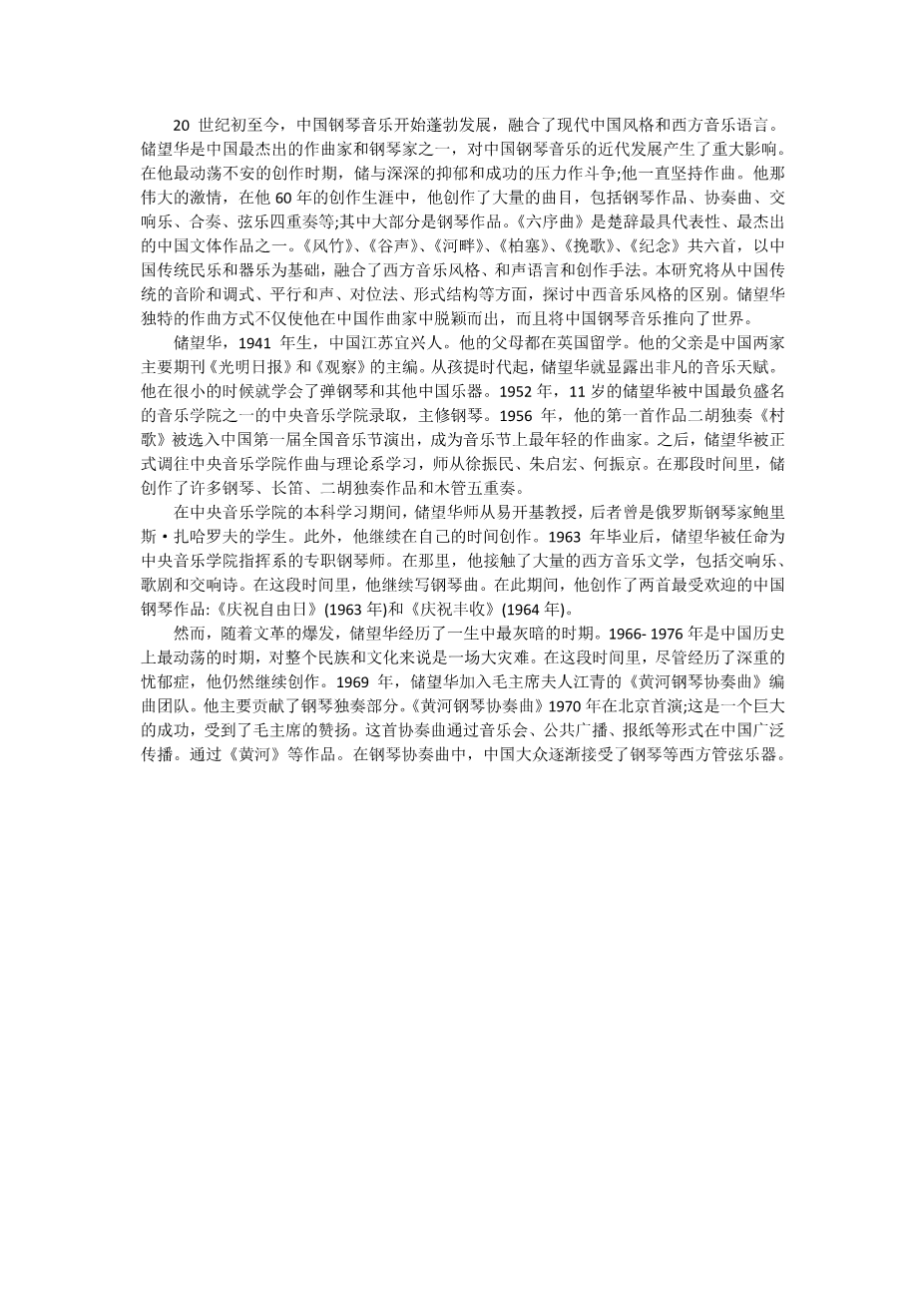 2017级”Pianax(钢斯)”毕业音乐会外文翻译资料 2023-07-27 10:53:58 英语原文共 2 页,剩余内容已隐藏,支付完成后下载完整资料 英语译文共 1 页,剩余内容已隐藏,支付完成后下载完整资料 资料编号:[604845],资料为PDF文档或Word文档,PDF文档可免费转换为Word 原文和译文剩余内容已隐藏,您需要先支付 30元 才能查看原文和译文全部内容!立即支付 发小红书推广免费获取该资料资格。点击链接进入获取推广文案即可: Ai一键组稿 | 降AI率 | 降重复率 | 论文一键排版 PREVIOUS NEXT 您可能感兴趣的文章 音乐启发训练分析外文翻译资料 古筝史外文翻译资料 从序列看五声性——中国当代音乐中不同传统的整合外文翻译资料 浅析新疆歌曲《曲蔓地》的演唱风格及技巧分析外文翻译资料 从戏曲到谭盾的中国戏曲打击乐外文翻译资料 我们时代的音乐教学:学生音乐教师对音乐教育、教师教育和成为教师的思考外文翻译资料 我们时代的音乐教学:学生音乐教师对音乐教育、教师教育和成为教师的思考外文翻译资料 莫扎特的降E大调小提琴协奏曲外文翻译资料 文化视域下古筝艺术表演技法的传承与创新研究外文翻译资料 文化视角下古筝表演艺术的传承与创新研究外文翻译资料