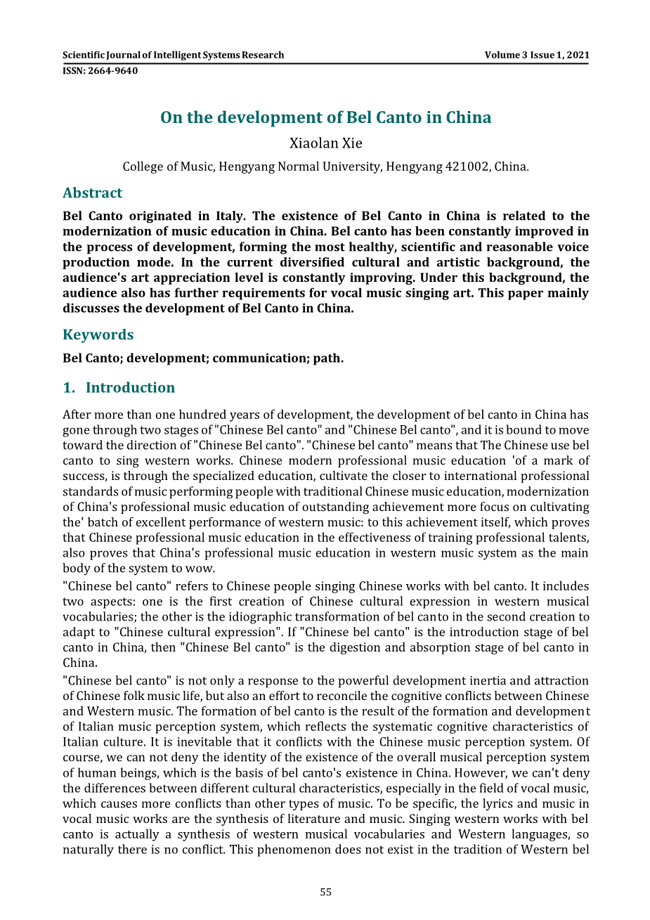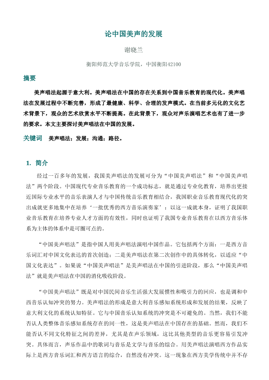论中国美声的发展外文翻译资料 2023-07-28 11:11:13 英语原文共 4 页,剩余内容已隐藏,支付完成后下载完整资料 英语译文共 4 页,剩余内容已隐藏,支付完成后下载完整资料 资料编号:[604708],资料为PDF文档或Word文档,PDF文档可免费转换为Word 原文和译文剩余内容已隐藏,您需要先支付 30元 才能查看原文和译文全部内容!立即支付 发小红书推广免费获取该资料资格。点击链接进入获取推广文案即可: Ai一键组稿 | 降AI率 | 降重复率 | 论文一键排版 PREVIOUS NEXT 您可能感兴趣的文章 音乐启发训练分析外文翻译资料 古筝史外文翻译资料 从序列看五声性——中国当代音乐中不同传统的整合外文翻译资料 浅析新疆歌曲《曲蔓地》的演唱风格及技巧分析外文翻译资料 从戏曲到谭盾的中国戏曲打击乐外文翻译资料 我们时代的音乐教学:学生音乐教师对音乐教育、教师教育和成为教师的思考外文翻译资料 我们时代的音乐教学:学生音乐教师对音乐教育、教师教育和成为教师的思考外文翻译资料 莫扎特的降E大调小提琴协奏曲外文翻译资料 文化视域下古筝艺术表演技法的传承与创新研究外文翻译资料 文化视角下古筝表演艺术的传承与创新研究外文翻译资料