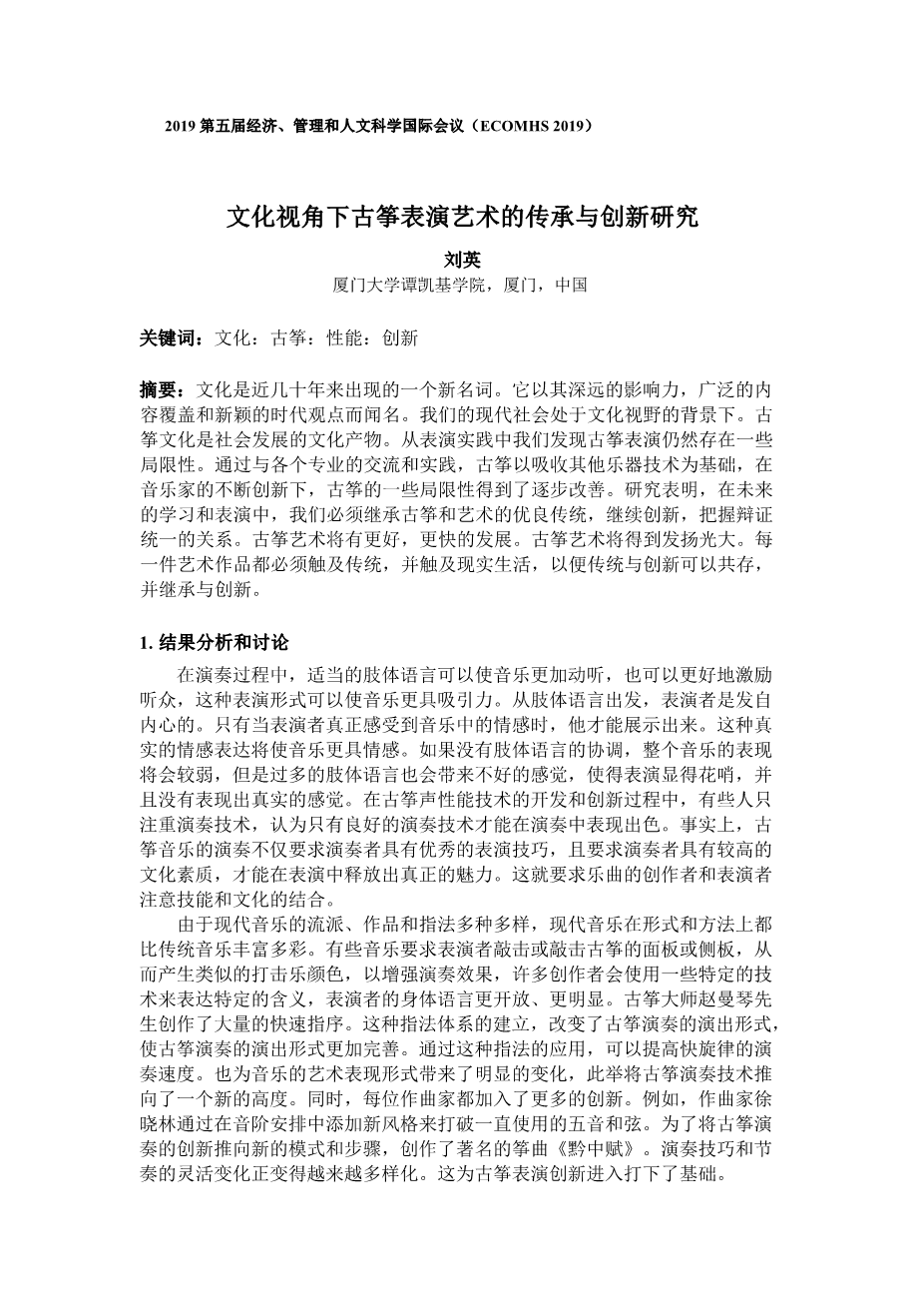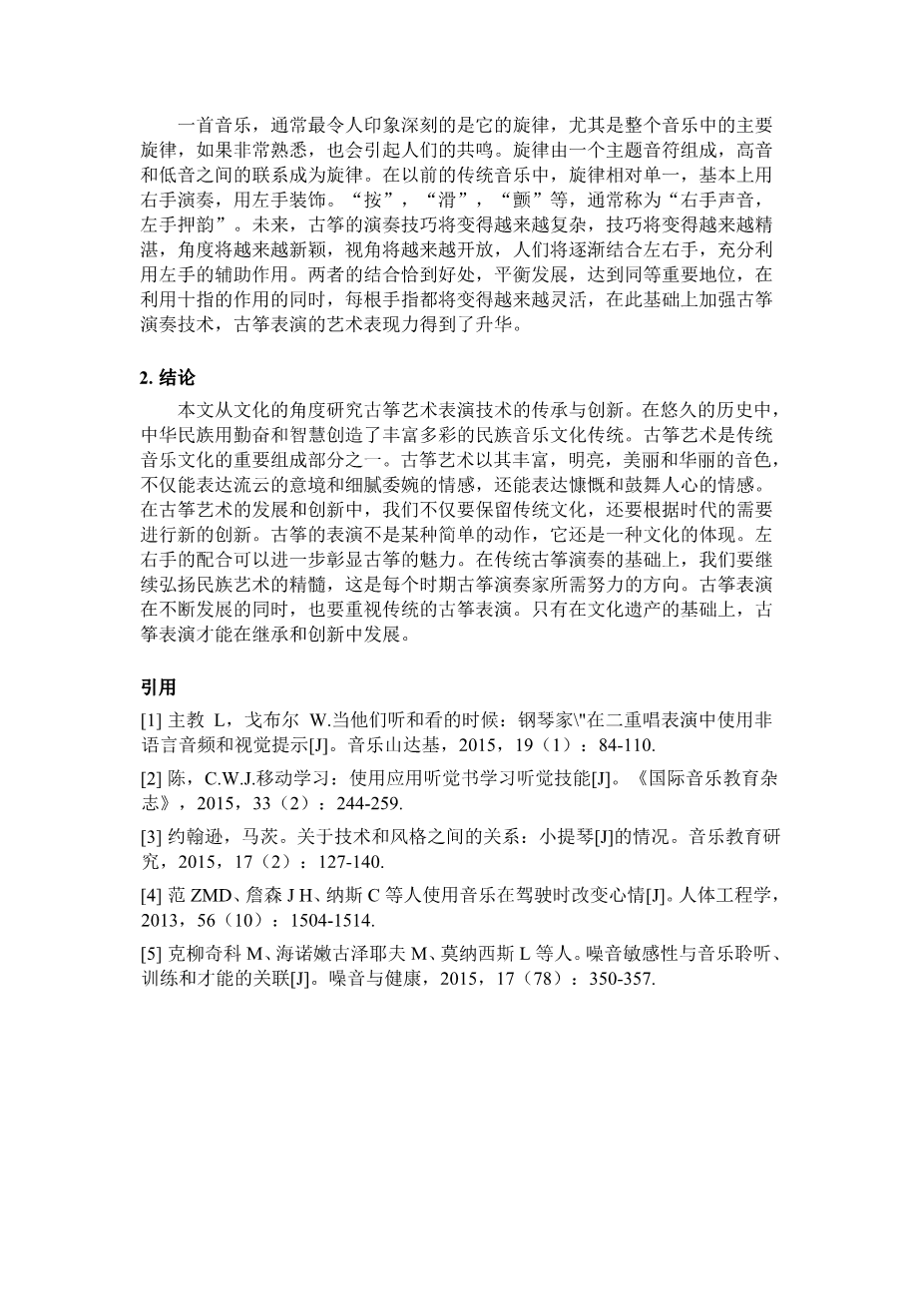文化视角下古筝表演艺术的传承与创新研究外文翻译资料 2023-07-28 11:12:17 英语原文共 3 页,剩余内容已隐藏,支付完成后下载完整资料 英语译文共 3 页,剩余内容已隐藏,支付完成后下载完整资料 资料编号:[604674],资料为PDF文档或Word文档,PDF文档可免费转换为Word 原文和译文剩余内容已隐藏,您需要先支付 30元 才能查看原文和译文全部内容!立即支付 发小红书推广免费获取该资料资格。点击链接进入获取推广文案即可: Ai一键组稿 | 降AI率 | 降重复率 | 论文一键排版 PREVIOUS NEXT 您可能感兴趣的文章 音乐启发训练分析外文翻译资料 古筝史外文翻译资料 从序列看五声性——中国当代音乐中不同传统的整合外文翻译资料 浅析新疆歌曲《曲蔓地》的演唱风格及技巧分析外文翻译资料 从戏曲到谭盾的中国戏曲打击乐外文翻译资料 我们时代的音乐教学:学生音乐教师对音乐教育、教师教育和成为教师的思考外文翻译资料 我们时代的音乐教学:学生音乐教师对音乐教育、教师教育和成为教师的思考外文翻译资料 莫扎特的降E大调小提琴协奏曲外文翻译资料 文化视域下古筝艺术表演技法的传承与创新研究外文翻译资料 文化视角下古筝表演艺术的传承与创新研究外文翻译资料