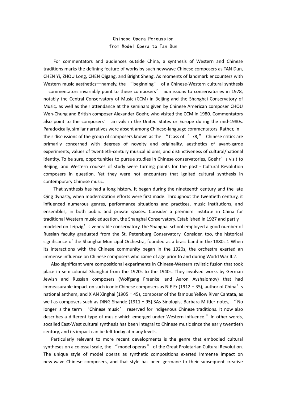 从戏曲到谭盾的中国戏曲打击乐外文翻译资料 2023-09-11 11:58:20 英语原文共 2 页,剩余内容已隐藏,支付完成后下载完整资料 英语译文共 2 页,剩余内容已隐藏,支付完成后下载完整资料 资料编号:[610234],资料为PDF文档或Word文档,PDF文档可免费转换为Word 原文和译文剩余内容已隐藏,您需要先支付 30元 才能查看原文和译文全部内容!立即支付 发小红书推广免费获取该资料资格。点击链接进入获取推广文案即可: Ai一键组稿 | 降AI率 | 降重复率 | 论文一键排版 PREVIOUS NEXT 您可能感兴趣的文章 音乐启发训练分析外文翻译资料 古筝史外文翻译资料 从序列看五声性——中国当代音乐中不同传统的整合外文翻译资料 浅析新疆歌曲《曲蔓地》的演唱风格及技巧分析外文翻译资料 从戏曲到谭盾的中国戏曲打击乐外文翻译资料 我们时代的音乐教学:学生音乐教师对音乐教育、教师教育和成为教师的思考外文翻译资料 我们时代的音乐教学:学生音乐教师对音乐教育、教师教育和成为教师的思考外文翻译资料 莫扎特的降E大调小提琴协奏曲外文翻译资料 文化视域下古筝艺术表演技法的传承与创新研究外文翻译资料 文化视角下古筝表演艺术的传承与创新研究外文翻译资料