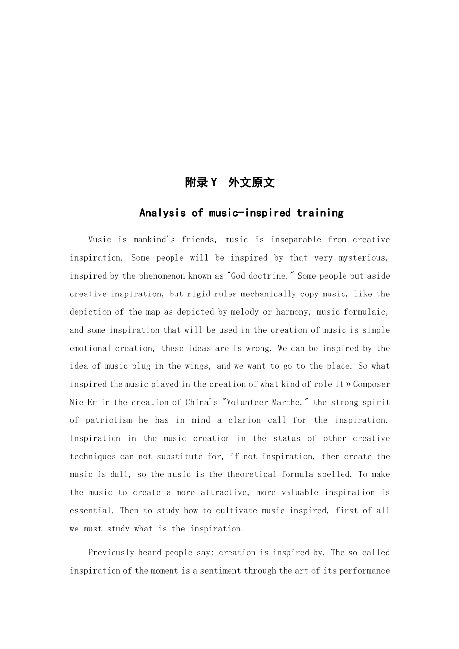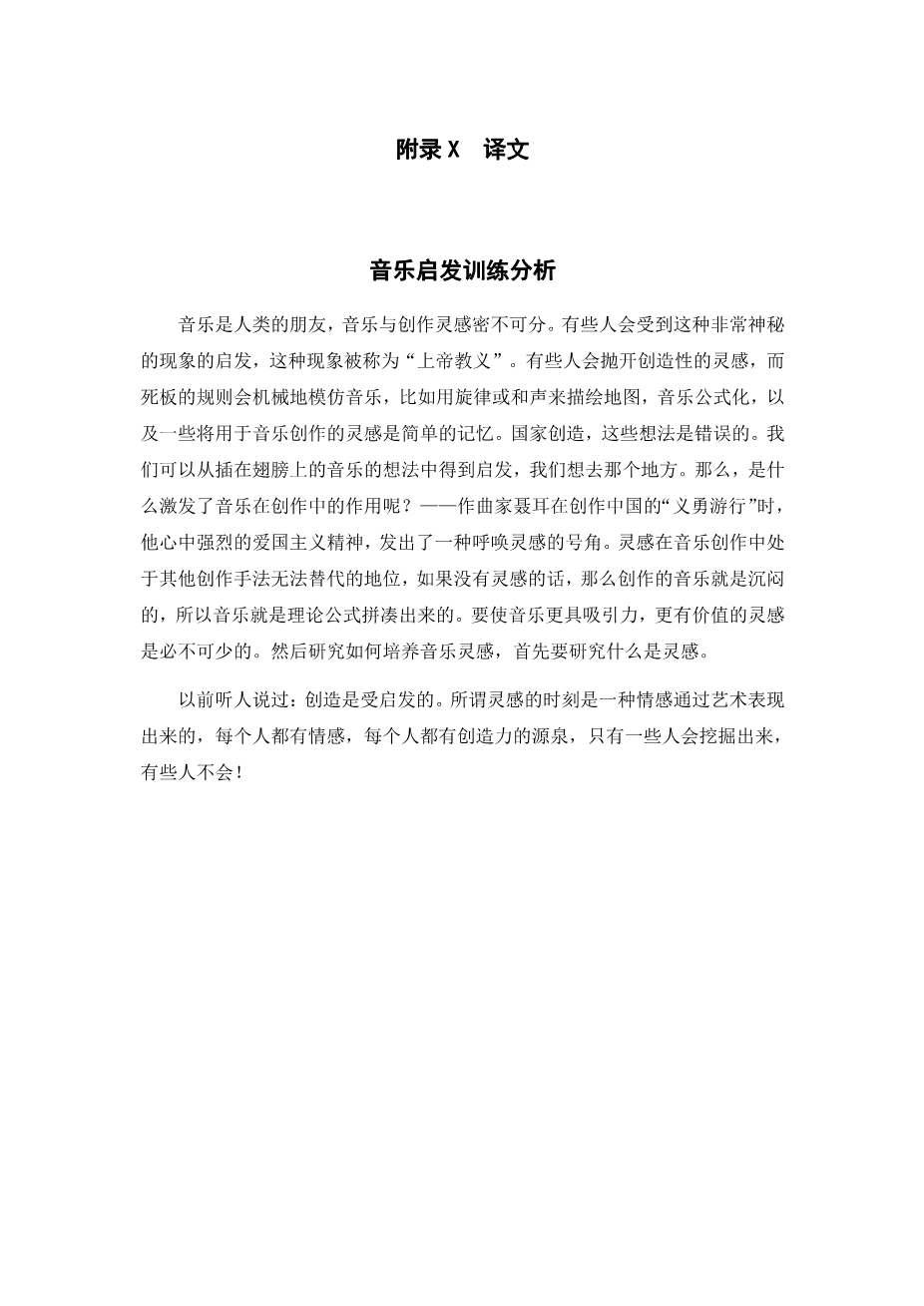音乐启发训练分析外文翻译资料 2023-09-11 11:59:26 英语原文共 3 页,剩余内容已隐藏,支付完成后下载完整资料 英语译文共 3 页,剩余内容已隐藏,支付完成后下载完整资料 资料编号:[610220],资料为PDF文档或Word文档,PDF文档可免费转换为Word 原文和译文剩余内容已隐藏,您需要先支付 30元 才能查看原文和译文全部内容!立即支付 发小红书推广免费获取该资料资格。点击链接进入获取推广文案即可: Ai一键组稿 | 降AI率 | 降重复率 | 论文一键排版 PREVIOUS NEXT 您可能感兴趣的文章 音乐启发训练分析外文翻译资料 古筝史外文翻译资料 从序列看五声性——中国当代音乐中不同传统的整合外文翻译资料 浅析新疆歌曲《曲蔓地》的演唱风格及技巧分析外文翻译资料 从戏曲到谭盾的中国戏曲打击乐外文翻译资料 我们时代的音乐教学:学生音乐教师对音乐教育、教师教育和成为教师的思考外文翻译资料 我们时代的音乐教学:学生音乐教师对音乐教育、教师教育和成为教师的思考外文翻译资料 莫扎特的降E大调小提琴协奏曲外文翻译资料 文化视域下古筝艺术表演技法的传承与创新研究外文翻译资料 文化视角下古筝表演艺术的传承与创新研究外文翻译资料