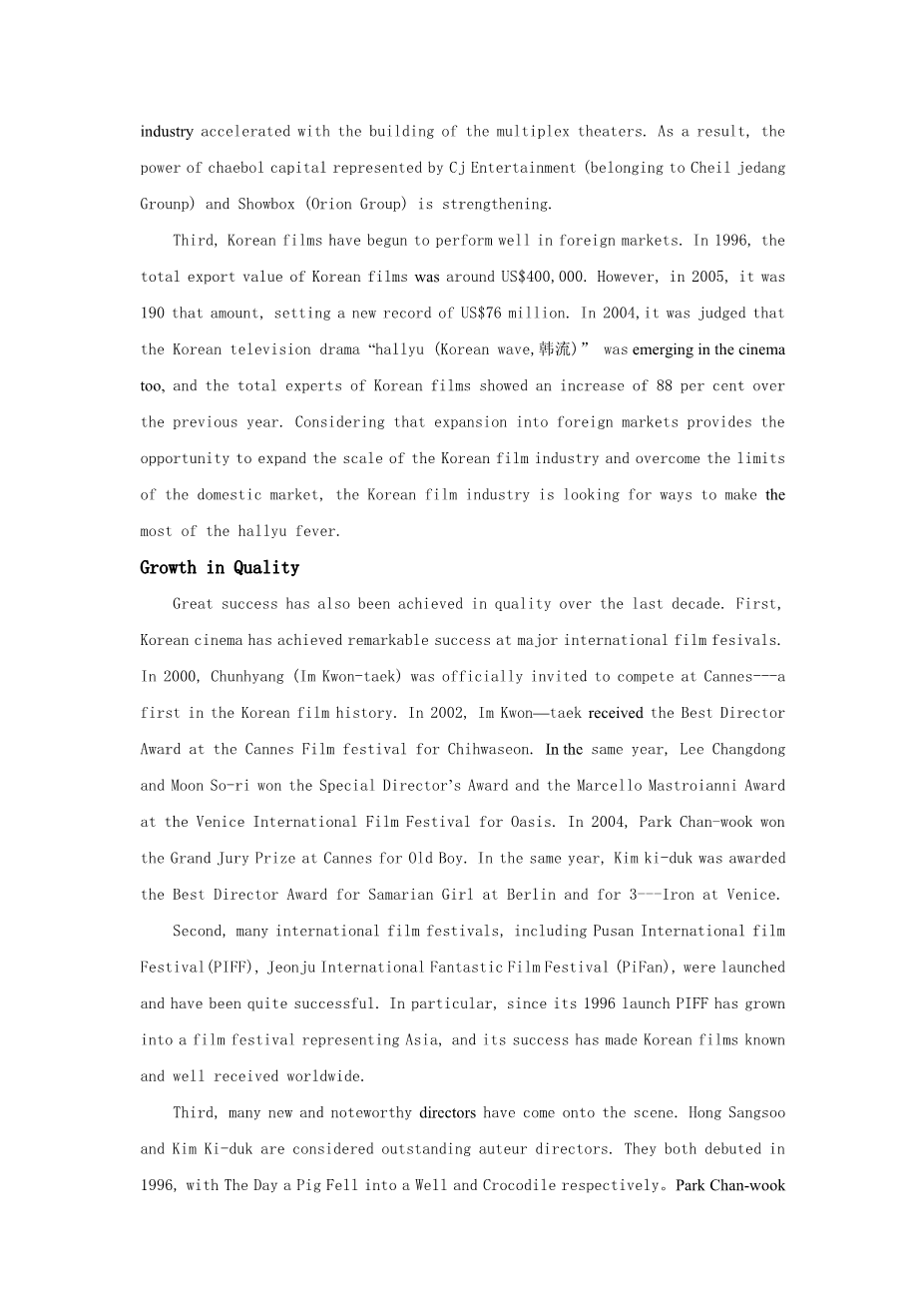 韩国电影的发展及前景外文翻译资料