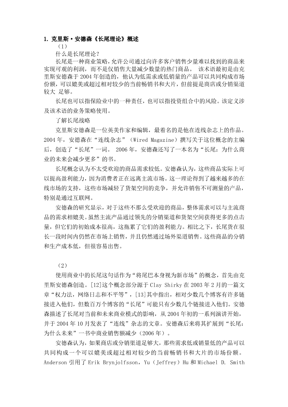 1. 克里斯·安德森《长尾理论》概述