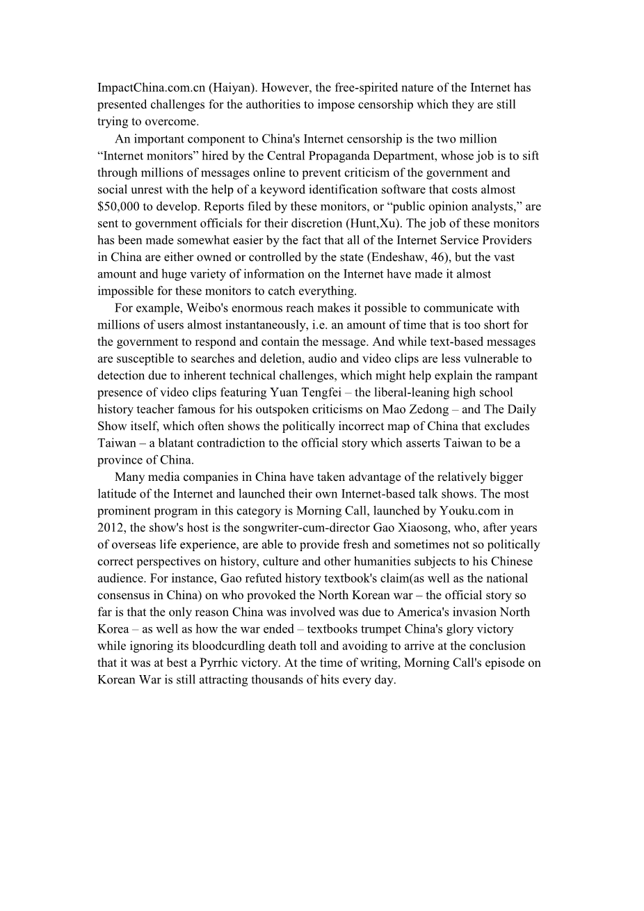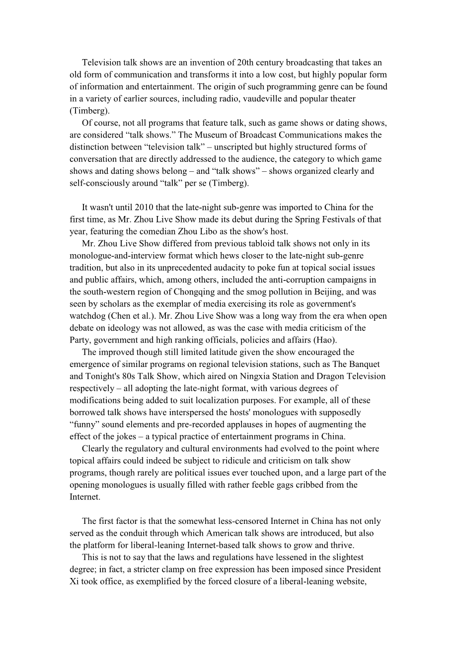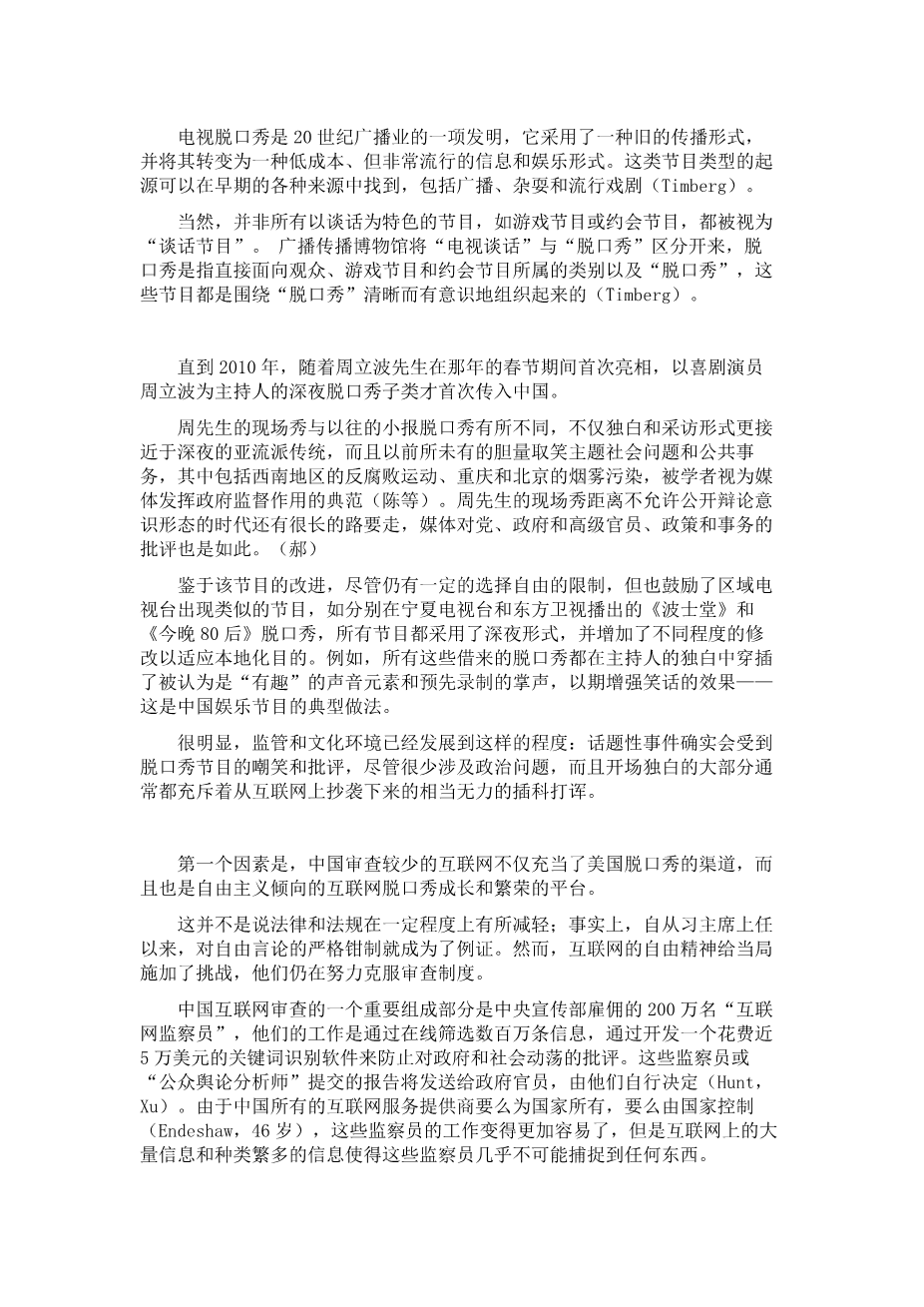 浅谈国产网络脱口秀节目的现状与未来发展—以《吐槽大会》为例外文翻译资料 2022-03-01 20:09:59 英语原文共 2 页,剩余内容已隐藏,支付完成后下载完整资料 英语译文共 2 页,剩余内容已隐藏,支付完成后下载完整资料资料编号:[431121],资料为PDF文档或Word文档,PDF文档可免费转换为Word 原文和译文剩余内容已隐藏,您需要先支付 30元 才能查看原文和译文全部内容!立即支付 发小红书推广免费获取该资料资格。点击链接进入获取推广文案即可: Ai一键组稿 | 降AI率 | 降重复率 | 论文一键排版 PREVIOUS NEXT 您可能感兴趣的文章 社交网站上的情绪披露:网络结构和心理需求的作用外文翻译资料 社会自我——“我”的意义及各种表现外文翻译资料 中美花木兰:从前现代到现代外文翻译资料 简析纸媒转型新路线 什么是新媒体?外文翻译资料 营销人员的行为经济学指南外文翻译资料 有效的计划微博营销外文翻译资料 网络主播的行业前景与现存问题外文翻译资料 浅析网络游戏直播——以《剑网3》为例外文翻译资料 电视娱乐化 交叉媒介与知识——一个研究项目外文翻译资料 社交媒体在体育俱乐部中的应用潜力 – 粉丝沟通与知识管理外文翻译资料