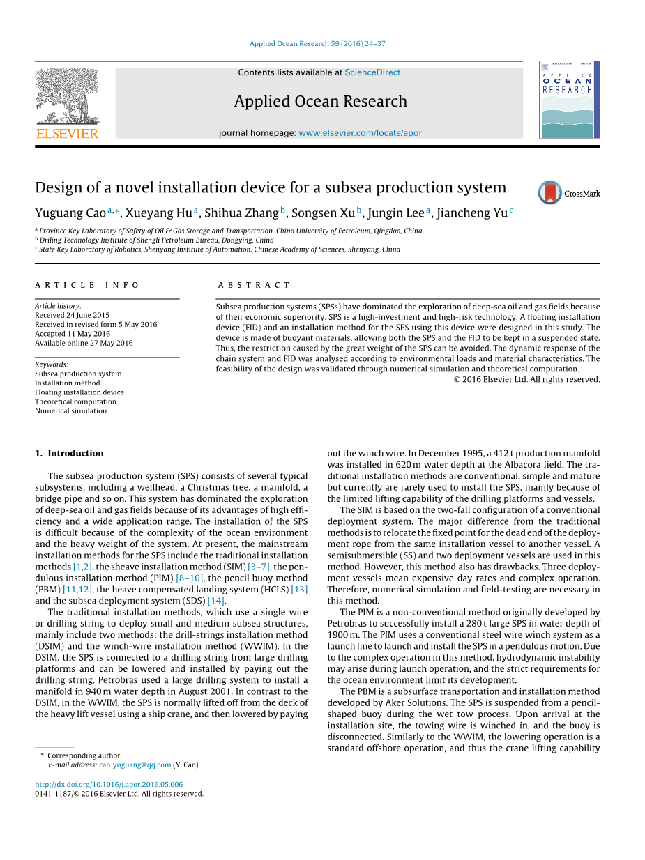 已经开发了各种深水安装方法解决三大相互关联的挑战,起重机吊装能力,对环境条件的动态响应和安装成本[6,10,11]。 主要因素是整体尺寸要安装的SPS。 尺寸经常限制实际起重能力显着,需要大型甲板运输SPS,导致昂贵的日费率。 FID的目的是为了解决上述挑战,满足部署要求深水中的大型SPS。
