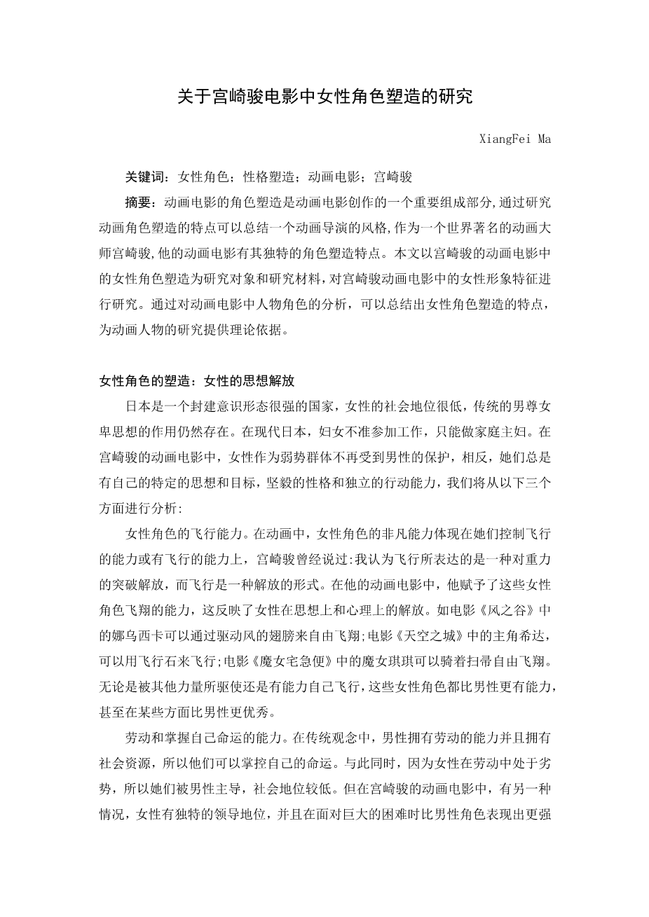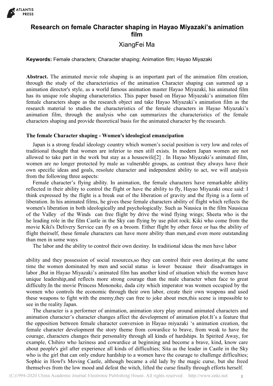 宫崎骏电影中的生态女性主义探析外文翻译资料 2022-03-09 22:31:45 英语原文共 2 页,剩余内容已隐藏,支付完成后下载完整资料 英语译文共 3 页,剩余内容已隐藏,支付完成后下载完整资料资料编号:[420812],资料为PDF文档或Word文档,PDF文档可免费转换为Word 原文和译文剩余内容已隐藏,您需要先支付 30元 才能查看原文和译文全部内容!立即支付 发小红书推广免费获取该资料资格。点击链接进入获取推广文案即可: Ai一键组稿 | 降AI率 | 降重复率 | 论文一键排版 PREVIOUS NEXT 您可能感兴趣的文章 社交网站上的情绪披露:网络结构和心理需求的作用外文翻译资料 社会自我——“我”的意义及各种表现外文翻译资料 中美花木兰:从前现代到现代外文翻译资料 简析纸媒转型新路线 什么是新媒体?外文翻译资料 营销人员的行为经济学指南外文翻译资料 有效的计划微博营销外文翻译资料 网络主播的行业前景与现存问题外文翻译资料 浅析网络游戏直播——以《剑网3》为例外文翻译资料 电视娱乐化 交叉媒介与知识——一个研究项目外文翻译资料 社交媒体在体育俱乐部中的应用潜力 – 粉丝沟通与知识管理外文翻译资料
