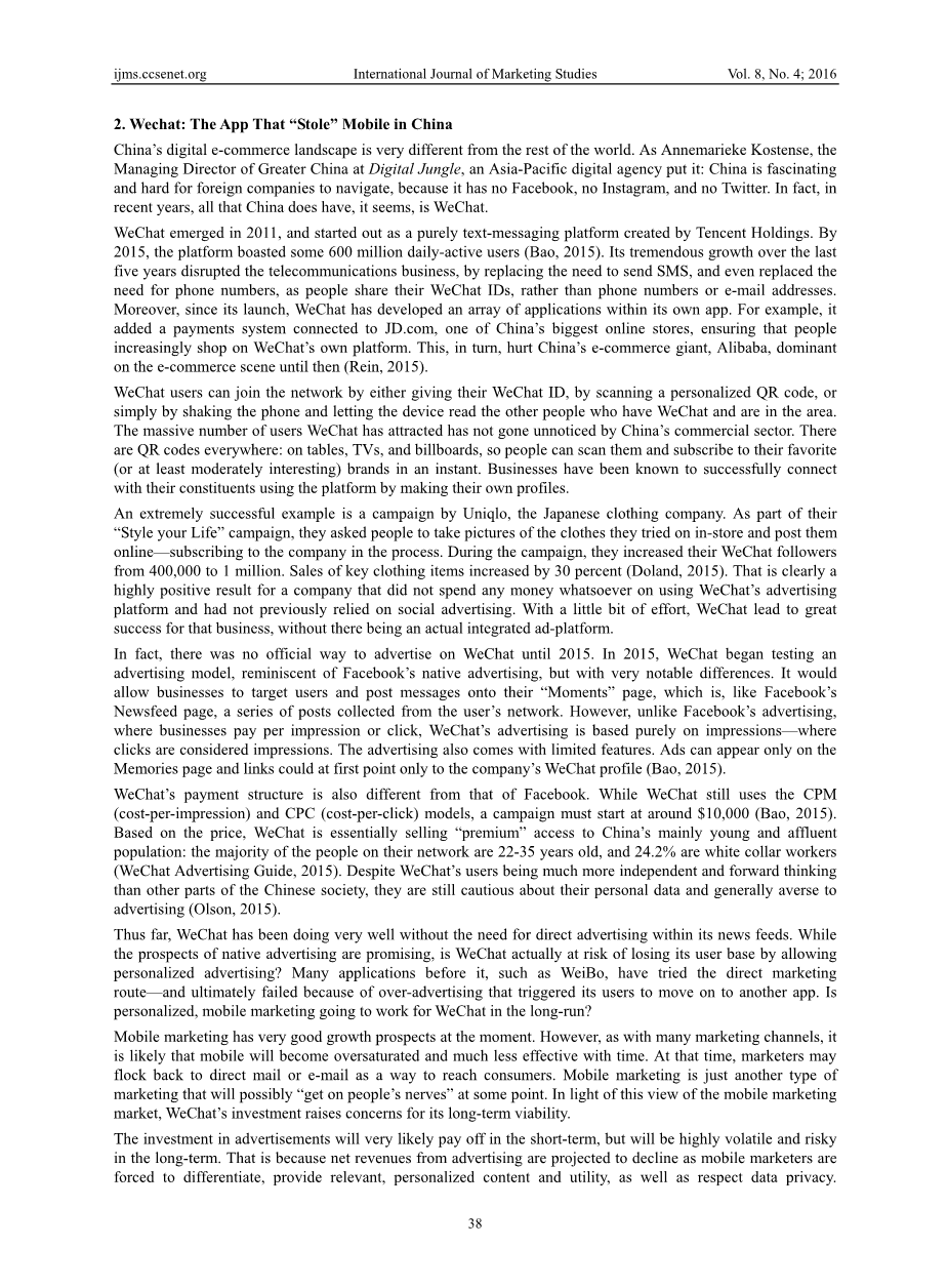 中国的移动营销:微信能否将其新的广告策略转变为可持续的竞争优势?