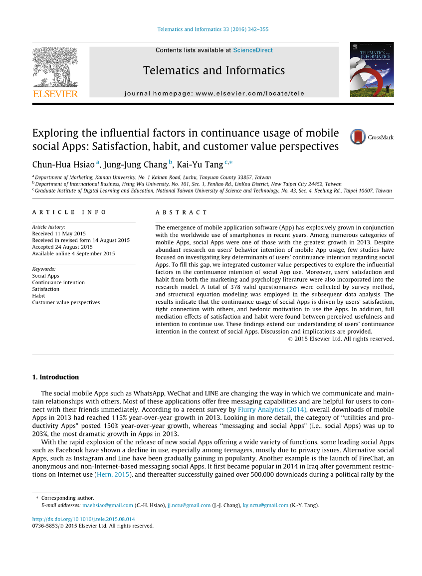 关键词:社交应用、持续使用意愿、满意度、习惯、消费者感知价值。