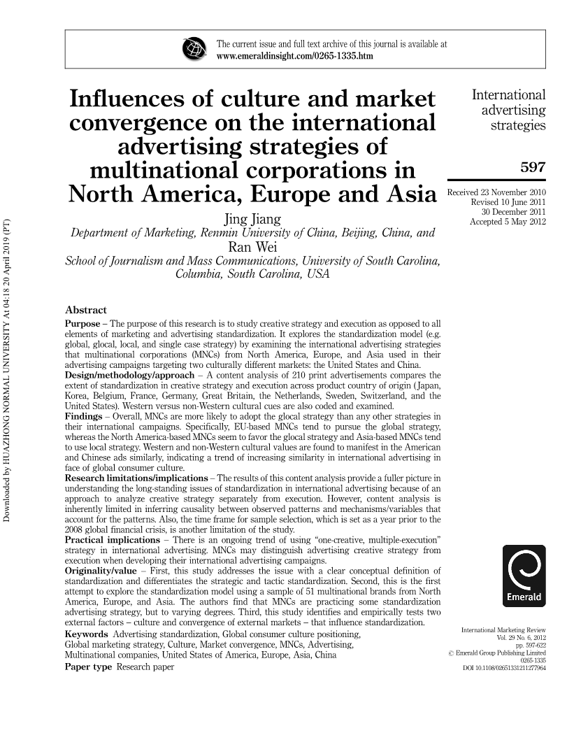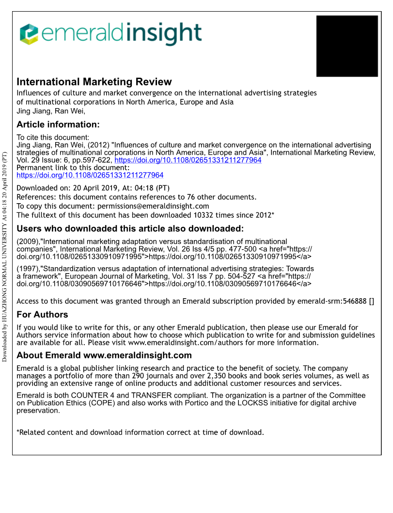 关键词广告标准化,全球消费文化定位,全球营销战略,文化,市场融合, 跨国公司,广告,跨国公司,美利坚合众国,欧洲,亚洲,中国