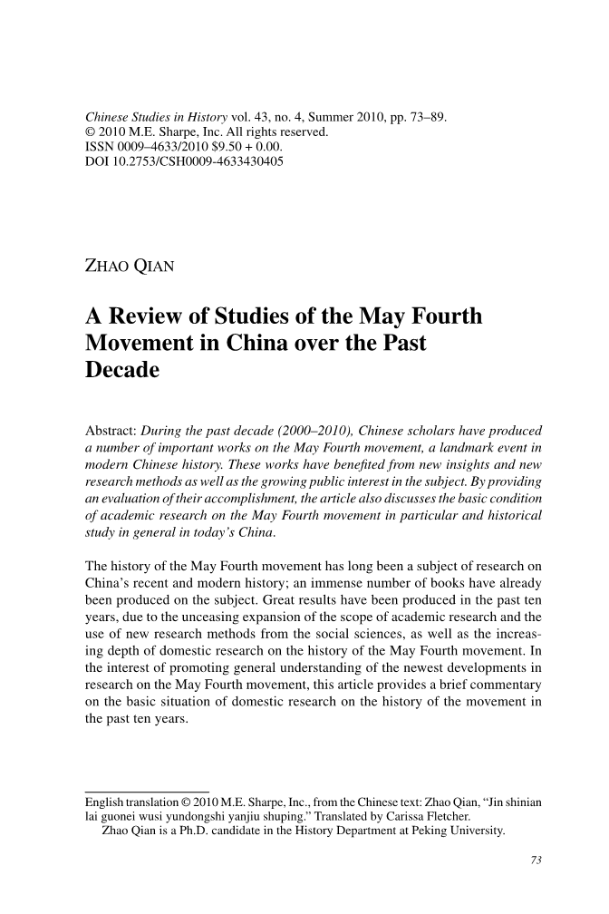 原文作者 ZHAO QIAN 单位 北京大学历史系候选人