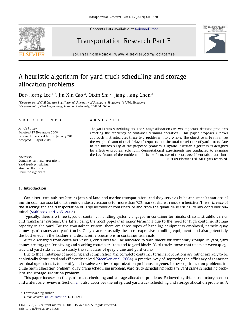 关键词:集装箱码头操作;集卡调度;存储分配;启发式算法