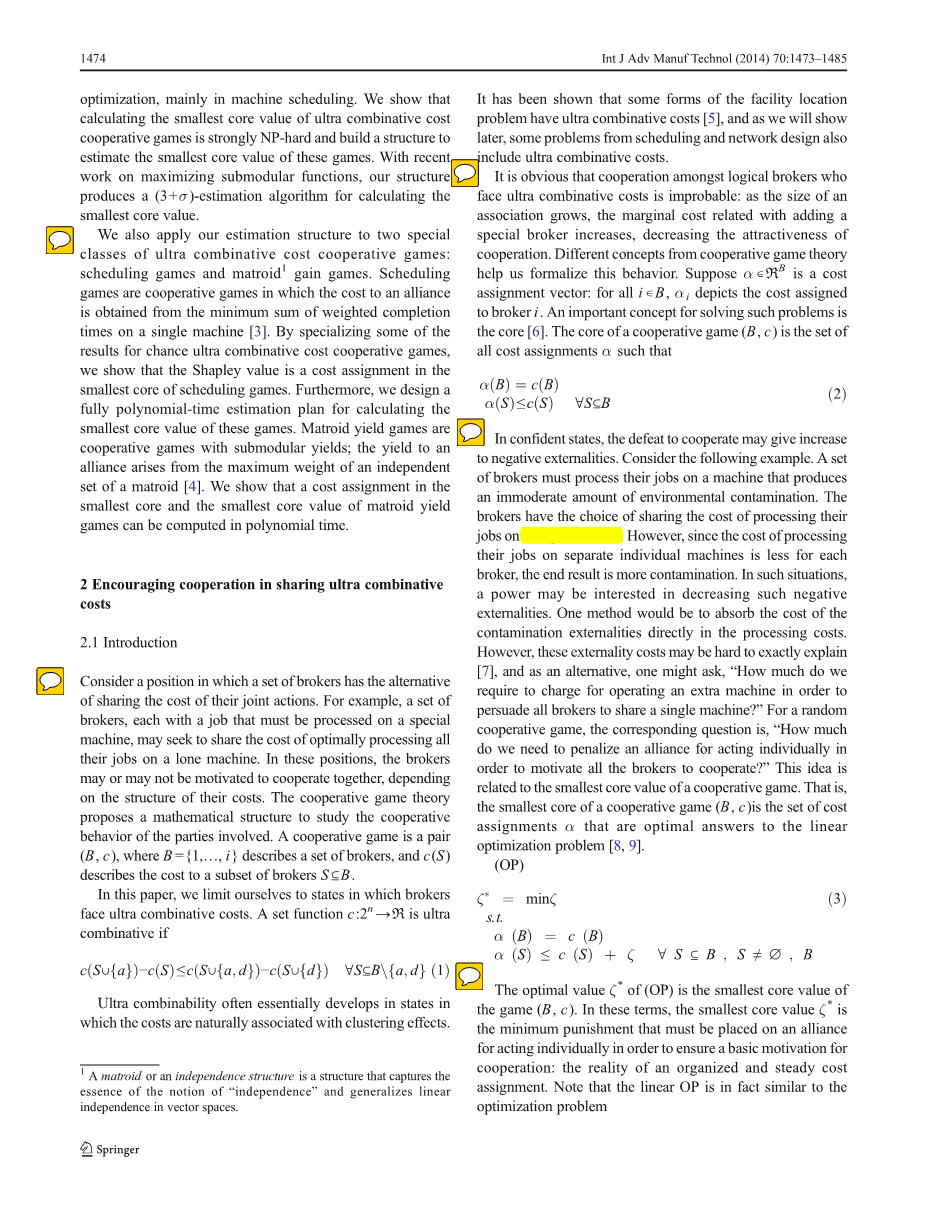 首先,我们要解释一下用超组合成本评价合作游戏的重要性。在组合优化的许多领域都遇到了将线性函数最小化的问题,但主要是在调度[31]。
