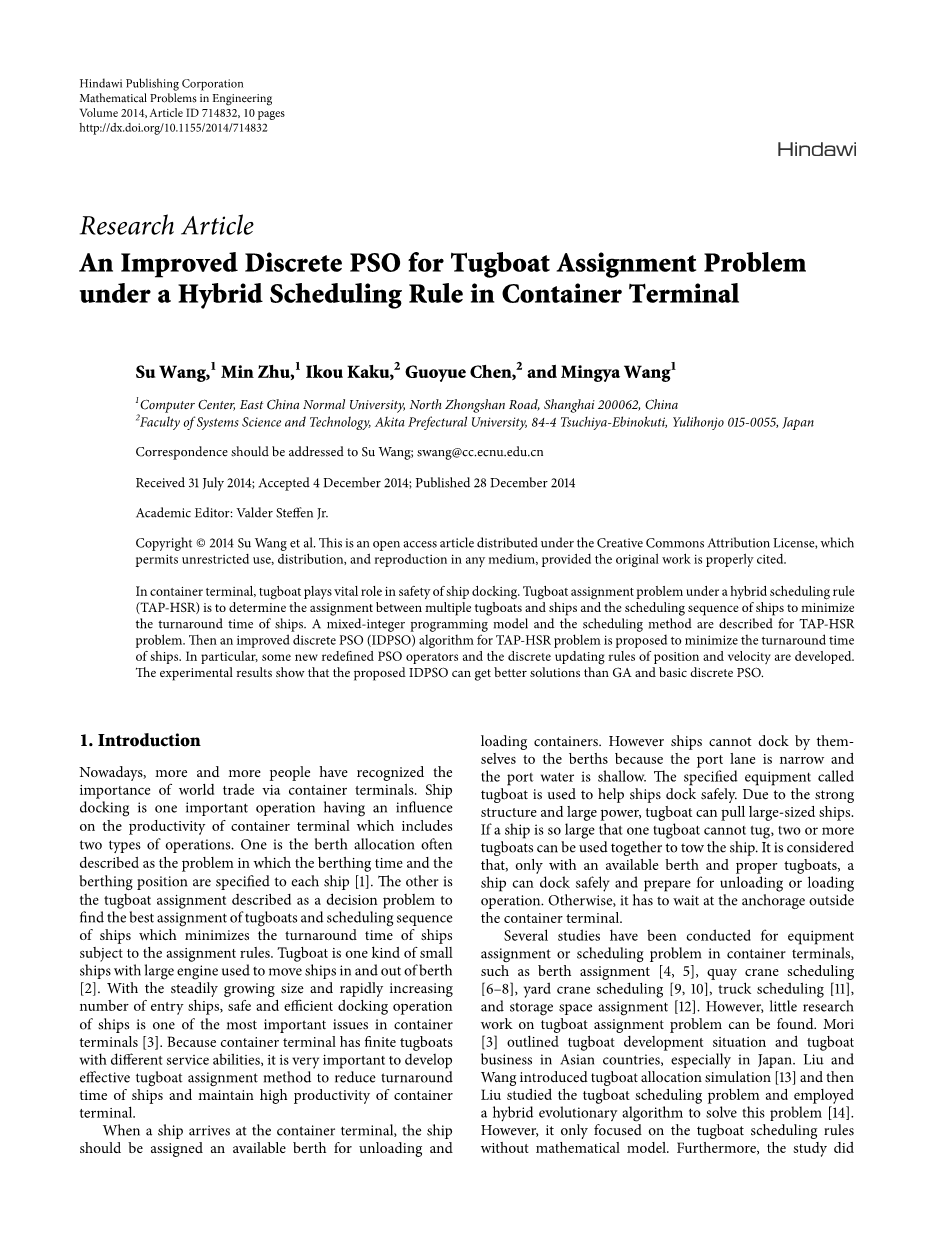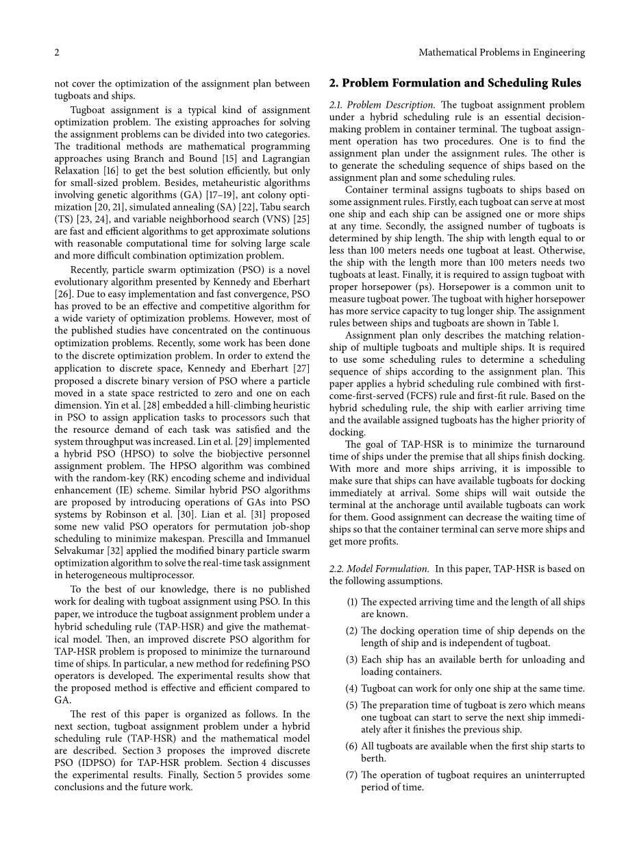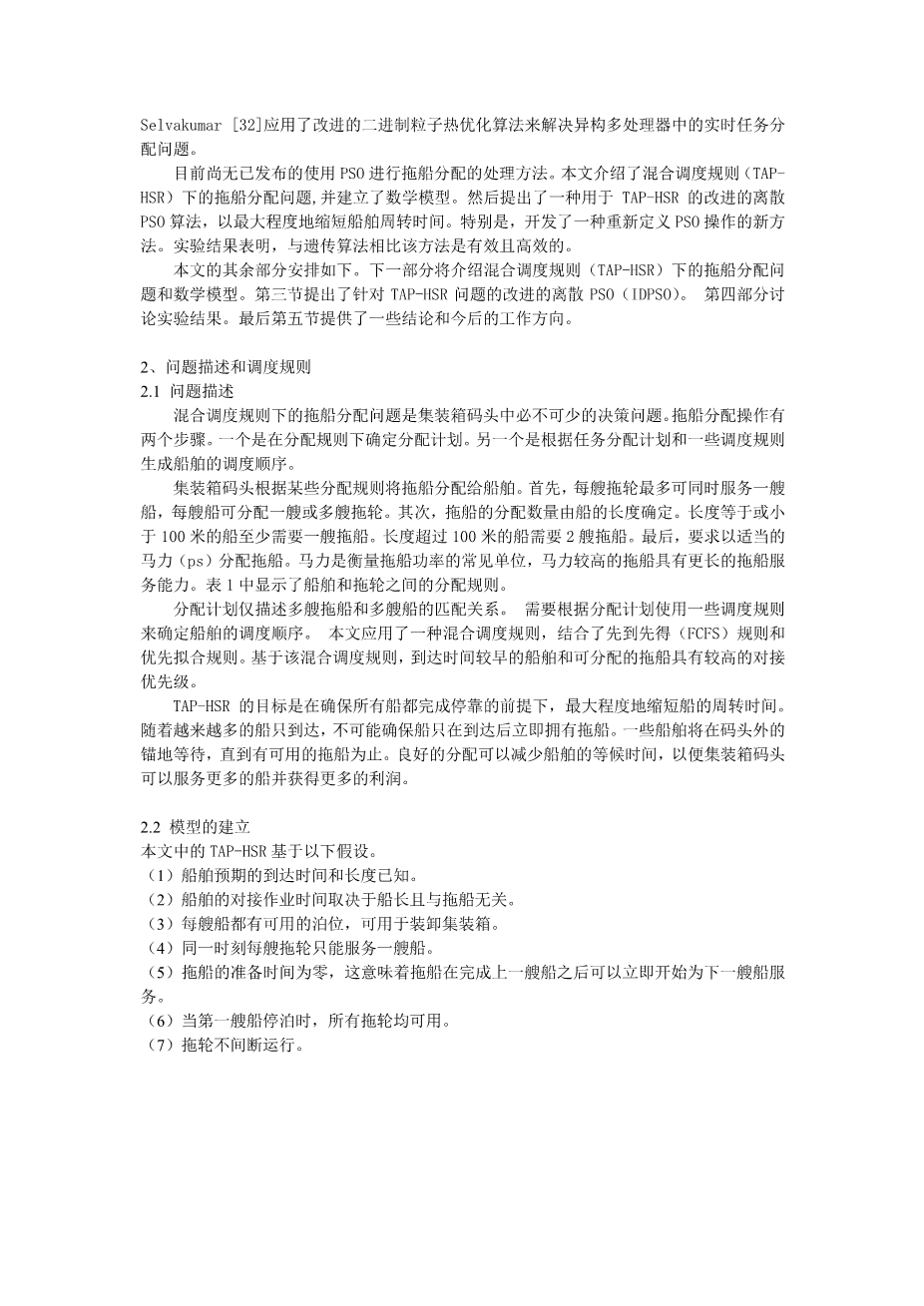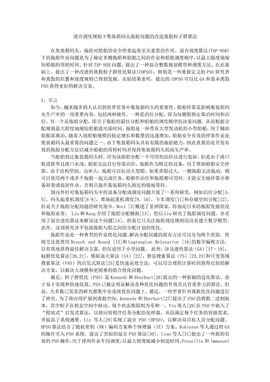 混合调度规则下集装箱码头拖轮问题的改进离散粒子群算法外文翻译资料