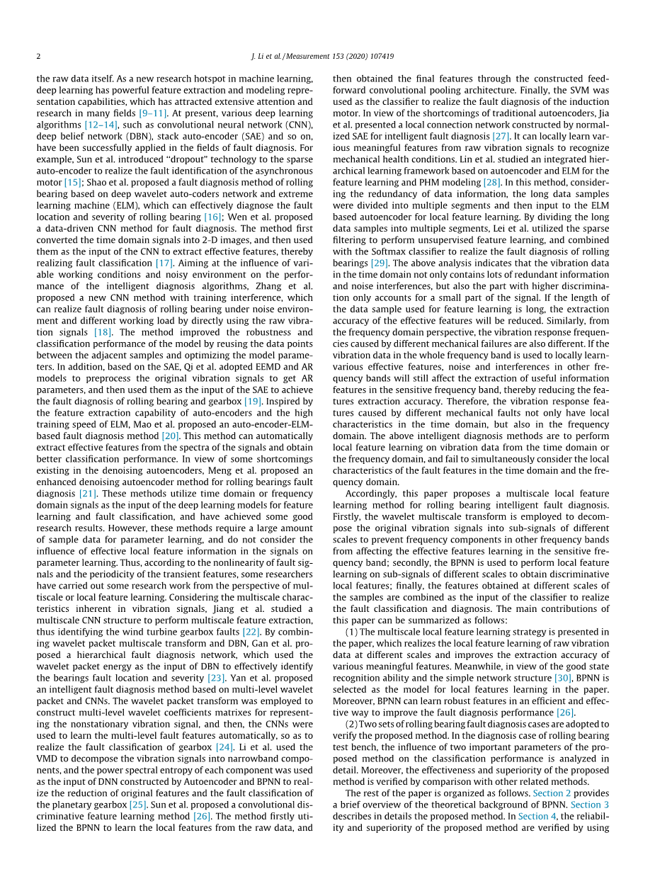 论文的其余部分组织如下。第2节简要介绍了BPNN的理论背景。第3节详细介绍了所提出的方法。在第4节中,通过两套滚动轴承数据集验证了该方法的可靠性和优越性。最后,第五部分得出了一些结论。
