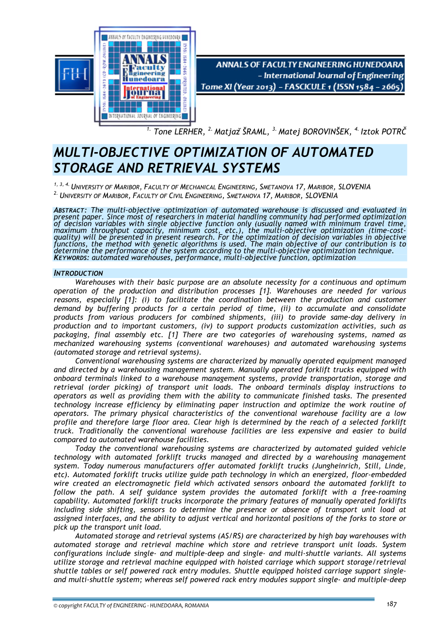 除了上述论文,我们对自动化仓库设计的研究也可以在[15],[16],[17],[18]中找到。通常,每个仓库都涉及多维问题。因此,仓库的设计应考虑到(1)运输时间;(2)费用;(3)质量。成功的仓库设计师应确保仓库以最小的运行时间,最小的成本,并按照要求的质量规范来完成。本文的目的是根据多目标优化方法(运输时间-成本-质量)对自动化仓库的设计和优化进行分析。所采用的方法是采用多目标函数和离散优化的方法来实现自动化仓库的最高效设计。由于非线性、离散、多变量和最重要的多目标函数,采用启发式的遗传算法[19]。本研究的重点在于开发一种基于多目标优化方法的自动化仓库设计与优化的计算机辅助设计工具。