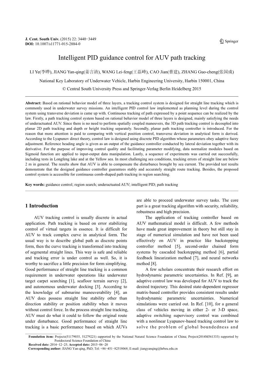 关键词:制导控制;区域搜索;欠驱动水下机器人;智能PID;路径追踪