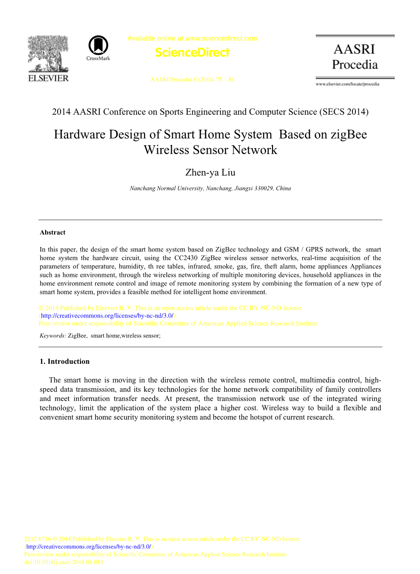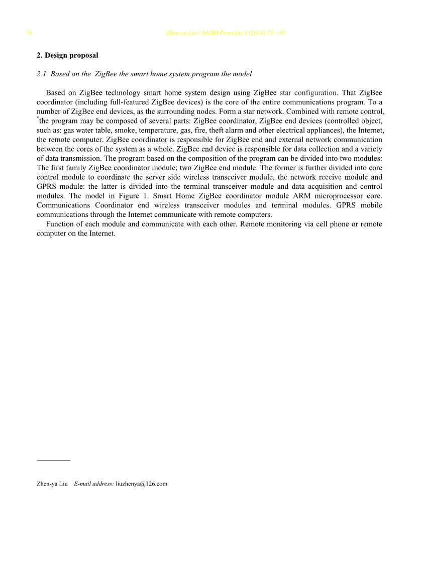 译文出处:Liu, Zhen-ya. Hardware Design of Smart Home System based on zigBee Wireless Sensor Network[J]. AASRI Procedia, 2014, 8:75-81.