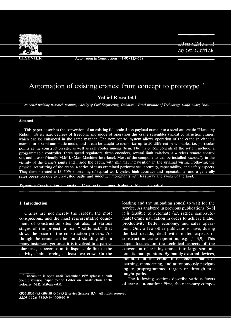 关键词:施工自动化;建筑起重机;机器人;机器控制