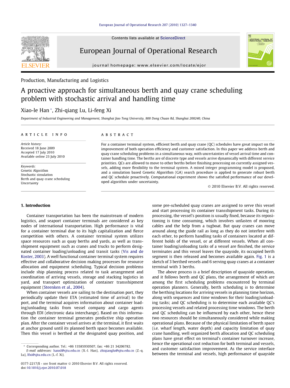 关键词:泊位分配;协作;不确定性