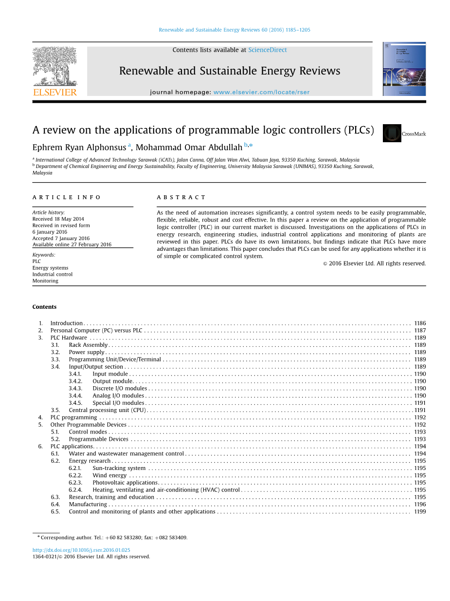 摘要:随着自动化需求的显着增加,控制系统需要变的易于编程,灵活,可靠,强大且经济高效。本文讨论了可编程逻辑控制器(PLC)在当前市场中的应用情况。本文综述了PLC在能源研究,工程研究,工业控制应用和植物监测方面的应用情况。PLC确实有其自身的局限性,但研究结果表明PLC具有更多的优点而不是限制。本文的结论是,无论是简单还是复杂的控制系统,PLC均可用于任何应用。 2016 Elsevier Ltd. All rights reserved.