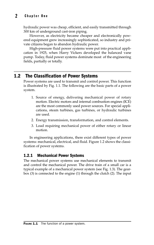 表1.1列出了不同电力系统的简要比较,表1.2列出了机械,电气和液压系统中的功率变量。