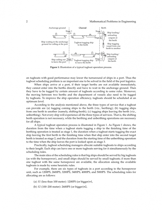 当船舶到达港口时,如果不能立即到达它们的目标泊位,必须在锚地等候。根据相应的规则,进入泊位时船舶需要一定数量的拖轮牵引。此外,在两个泊位之间的移动也需要拖轮牵引。为提高船舶运行效率,拖轮应安排在最佳水平。