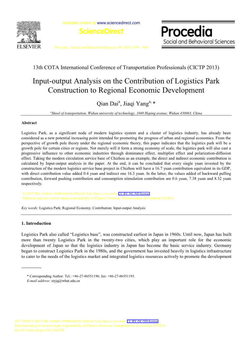 关键词:物流园区;区域经济;效益;投入产出分析
