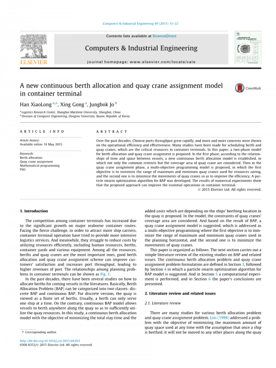 集装箱码头连续泊位分配与岸桥调度联合优化[6060]外文翻译资料 2021-12-08 22:15:16 英语原文共 8 页 英语原文共 13 页 原文和译文剩余内容已隐藏,您需要先支付 30元 才能查看原文和译文全部内容!立即支付 发小红书推广免费获取该资料资格。点击链接进入获取推广文案即可: Ai一键组稿 | 降AI率 | 降重复率 | 论文一键排版 PREVIOUS NEXT 您可能感兴趣的文章 一种新的需求响应型城市物流配送业务资源动态分配模型外文翻译资料 以T公司为例,根据基于活动的分类改进库存控制和预测外文翻译资料 新零售条件下生鲜食品家庭配送模式研究外文翻译资料 探索大规模定制作为快递行业创新的潜力外文翻译资料 中国的国内快递业发展战略分析外文翻译资料 有效的物流管理物流 :什么是物流?外文翻译资料 运用层次分析法分析供应链管理的绩效评价外文翻译资料 基于分支切割算法定价的带时间窗口的提货和交货问题外文翻译资料 供应链管理中的电子商务物流:实践视角外文翻译资料 第三方物流服务对客户绩效的贡献外文翻译资料