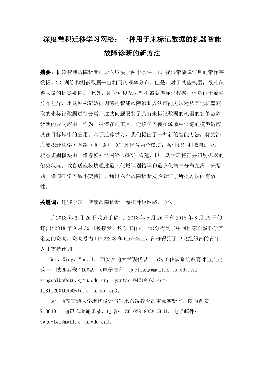 深度卷积迁移学习网络:一种用于未标记数据的机器智能 故障诊断的新方法外文翻译资料 2022-08-09 16:28:45 英语原文共 18 页,剩余内容已隐藏,支付完成后下载完整资料 英语译文共 27 页,剩余内容已隐藏,支付完成后下载完整资料 资料编号:[238889],资料为PDF文档或Word文档,PDF文档可免费转换为Word 原文和译文剩余内容已隐藏,您需要先支付 30元 才能查看原文和译文全部内容!立即支付 发小红书推广免费获取该资料资格。点击链接进入获取推广文案即可: Ai一键组稿 | 降AI率 | 降重复率 | 论文一键排版 PREVIOUS NEXT 您可能感兴趣的文章 一种新的需求响应型城市物流配送业务资源动态分配模型外文翻译资料 以T公司为例,根据基于活动的分类改进库存控制和预测外文翻译资料 新零售条件下生鲜食品家庭配送模式研究外文翻译资料 探索大规模定制作为快递行业创新的潜力外文翻译资料 中国的国内快递业发展战略分析外文翻译资料 有效的物流管理物流 :什么是物流?外文翻译资料 运用层次分析法分析供应链管理的绩效评价外文翻译资料 基于分支切割算法定价的带时间窗口的提货和交货问题外文翻译资料 供应链管理中的电子商务物流:实践视角外文翻译资料 第三方物流服务对客户绩效的贡献外文翻译资料