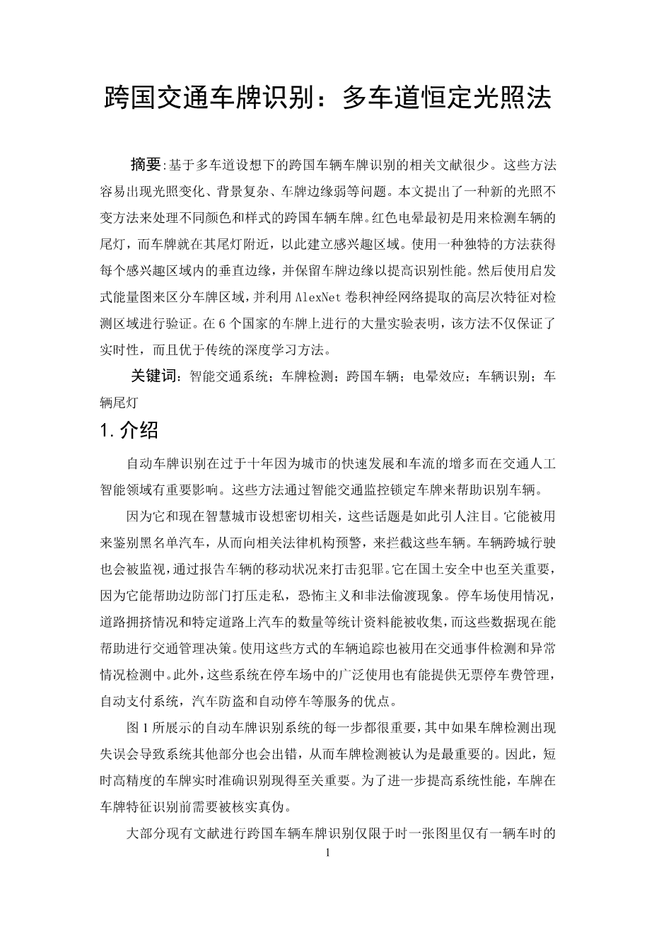 跨国交通车牌识别:多车道恒定光照法外文翻译资料 2022-08-10 16:52:42 英语原文共 16 页,剩余内容已隐藏,支付完成后下载完整资料 英语译文共 11 页,剩余内容已隐藏,支付完成后下载完整资料 资料编号:[238185],资料为PDF文档或Word文档,PDF文档可免费转换为Word 原文和译文剩余内容已隐藏,您需要先支付 30元 才能查看原文和译文全部内容!立即支付 发小红书推广免费获取该资料资格。点击链接进入获取推广文案即可: Ai一键组稿 | 降AI率 | 降重复率 | 论文一键排版 PREVIOUS NEXT 您可能感兴趣的文章 一种新的需求响应型城市物流配送业务资源动态分配模型外文翻译资料 以T公司为例,根据基于活动的分类改进库存控制和预测外文翻译资料 新零售条件下生鲜食品家庭配送模式研究外文翻译资料 探索大规模定制作为快递行业创新的潜力外文翻译资料 中国的国内快递业发展战略分析外文翻译资料 有效的物流管理物流 :什么是物流?外文翻译资料 运用层次分析法分析供应链管理的绩效评价外文翻译资料 基于分支切割算法定价的带时间窗口的提货和交货问题外文翻译资料 供应链管理中的电子商务物流:实践视角外文翻译资料 第三方物流服务对客户绩效的贡献外文翻译资料