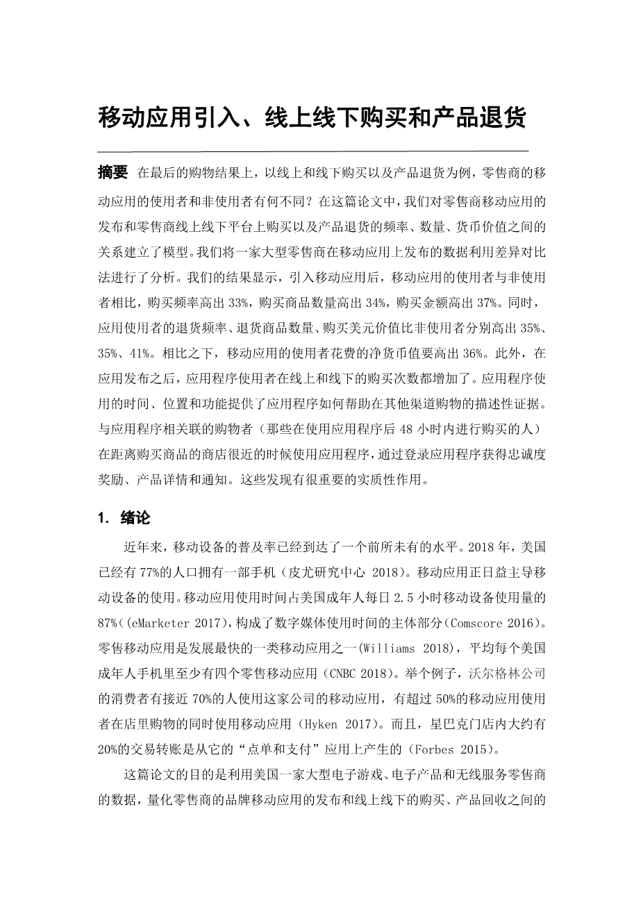 移动应用引入、线上线下购买和产品退货外文翻译资料