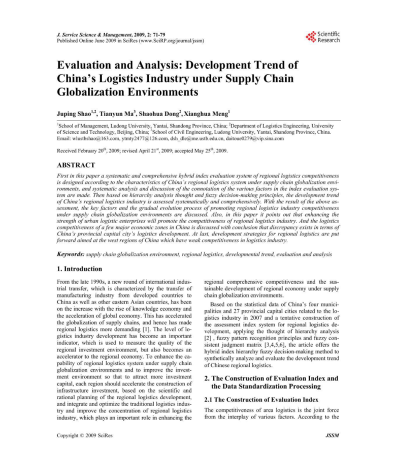 评估与分析:供应链全球化环境下中国物流业的发展趋势外文翻译资料