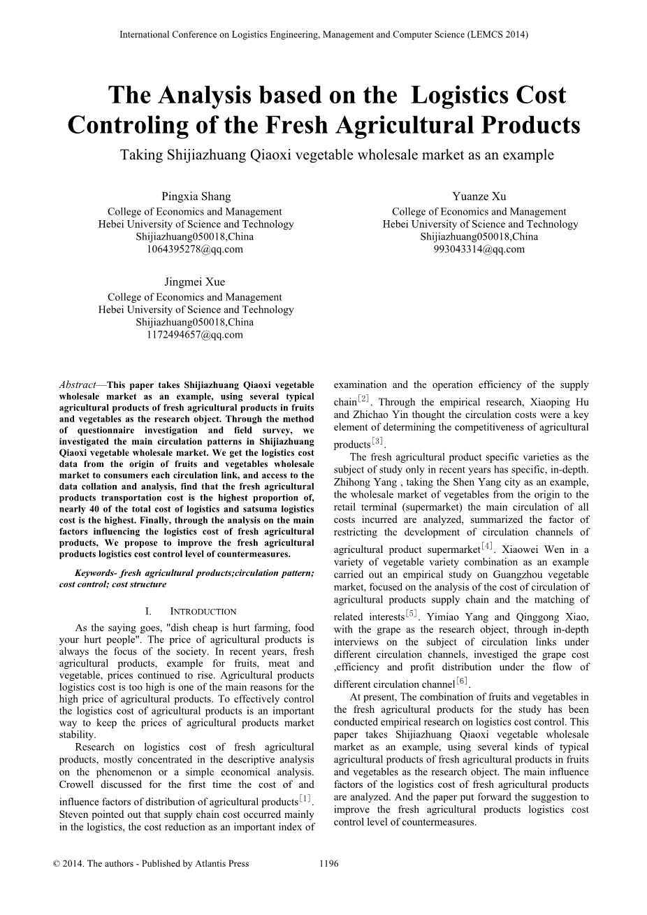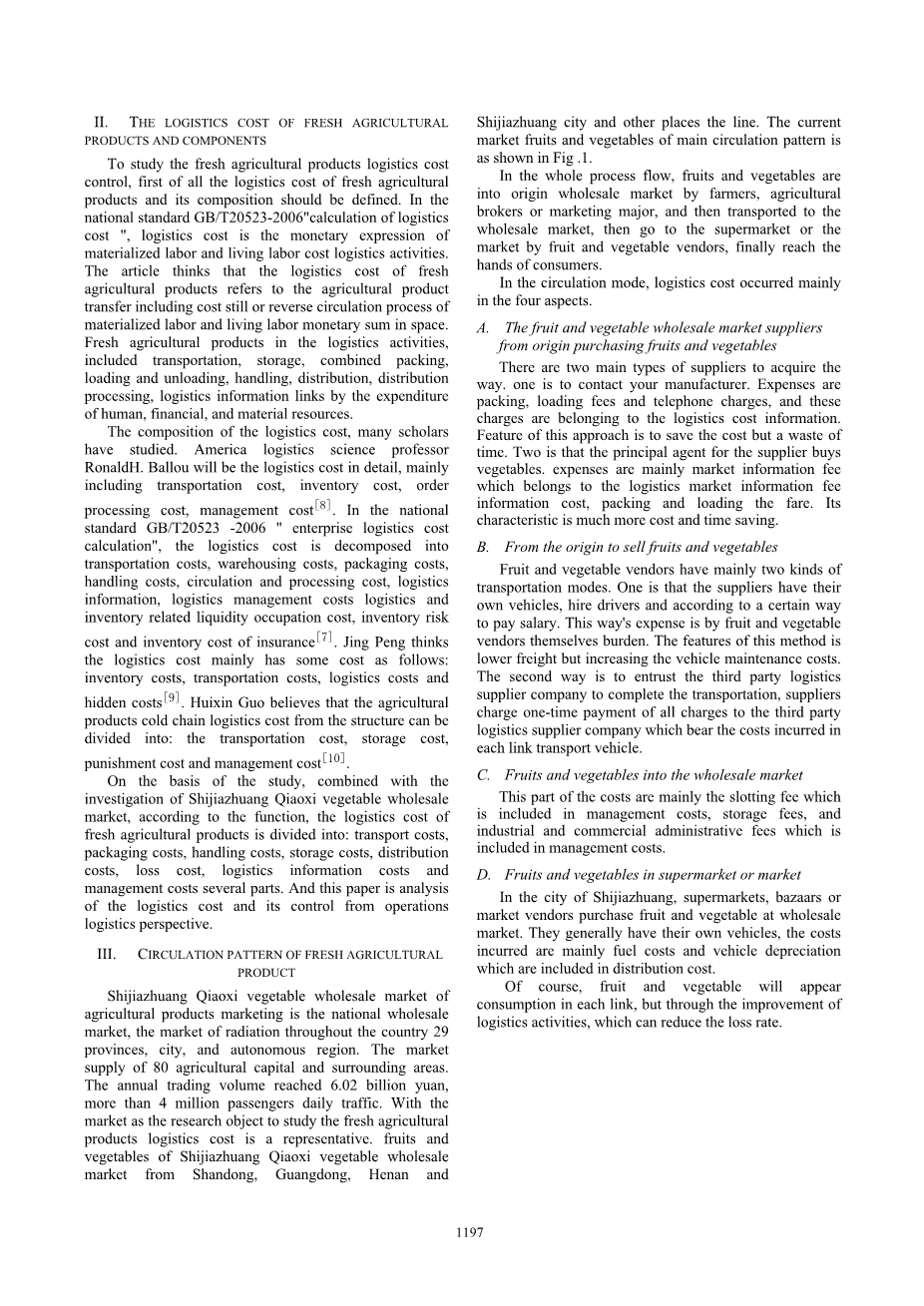 基于鲜活农产品物流成本控制的分析——以石家庄桥西蔬菜批发市场为例外文翻译资料