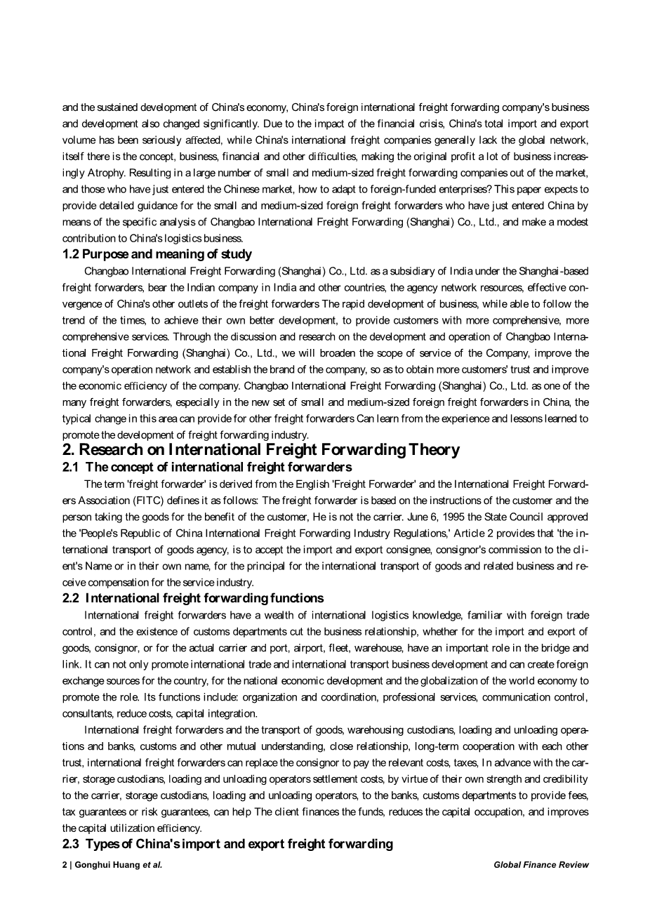 我国加入世界贸易组织以来,以及现代物流业的兴起和发展,对货代企业的经营环境产生了重大影响。同时自2005年起中国取消了对货代行业的市场准入限制。国外同行的实力越来越多的进入中国的货运代理市场,而国内外的航运公司都纷纷成立了自己的货运代理企业,各种因素使得我国的货运市场竞争非常激烈。随着后金融危机时代的到来以及美国等西方国家降低信用评级,随后中国经济的持续发展,中国的对外国际货运代理公司的业务和发展也发生了重大变化。由于受到金融危机的影响,我国进出口总额受到了严重影响,而我国的国际货运公司普遍缺乏全球网络,本身就存在概念、业务、财务等困难,使得原本利润丰厚的很多业务日益萎缩。导致大批中小货运代理公司退出市场,而那些刚刚进入中国市场的企业,如何适应外资企业?本文希望通过对长宝国际货运代理(上海)有限公司的具体分析,为刚刚进入中国的国外中小型货运代理提供详细的指导,为中国的物流事业做出微薄的贡献。